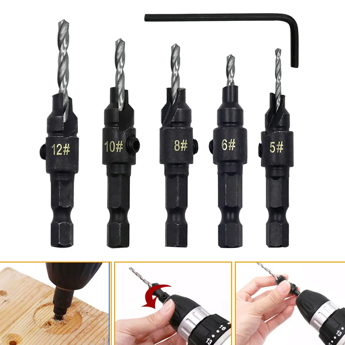 Шестигранный хвостовик, Быстросменные инструменты для деревообработки, Зенковка, сверло, набор пилотных отверстий, отвертка, столярная развертка, фаска с гаечным ключом