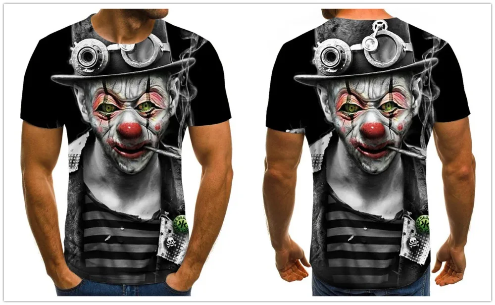 Футболка мужская с 3D клоуном, модная тенниска с коротким рукавом, ...