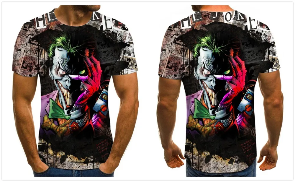 Футболка Джокер с 3D принтом Мужская забавная одежда с коротким рук...