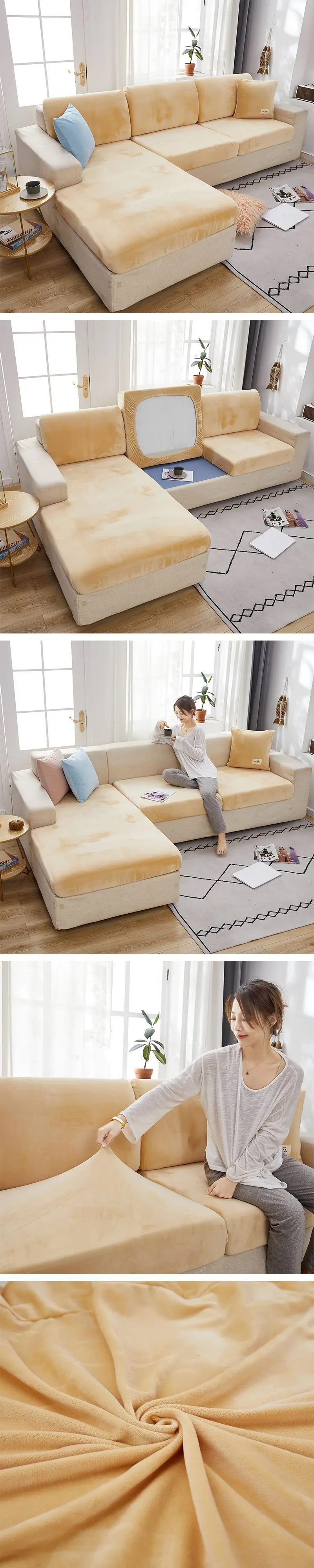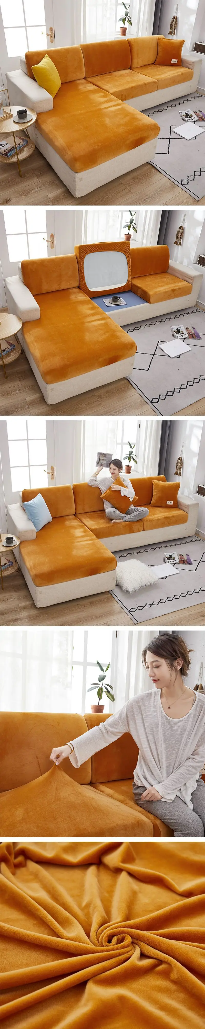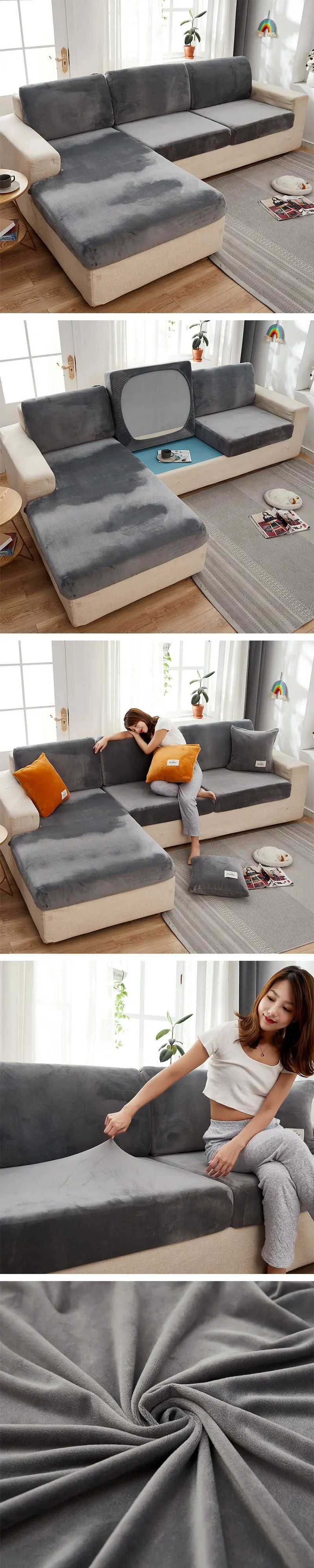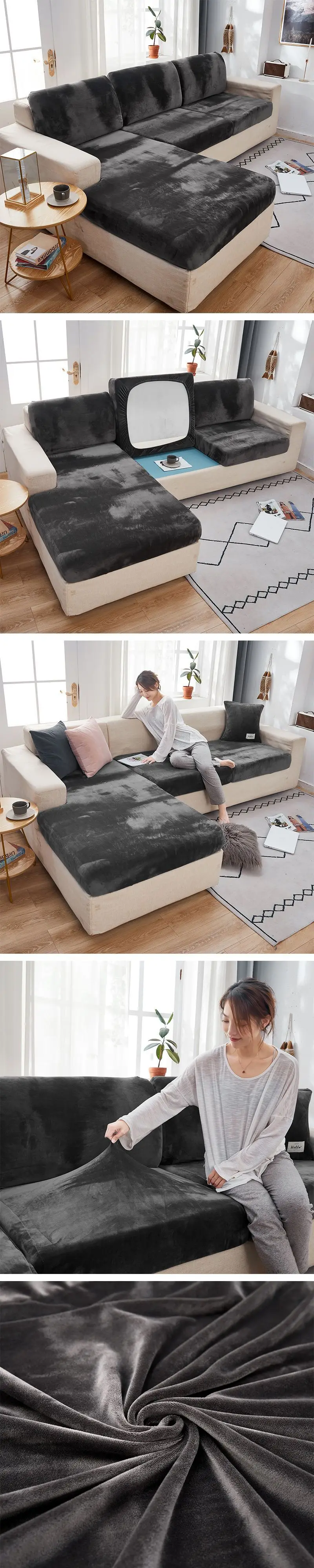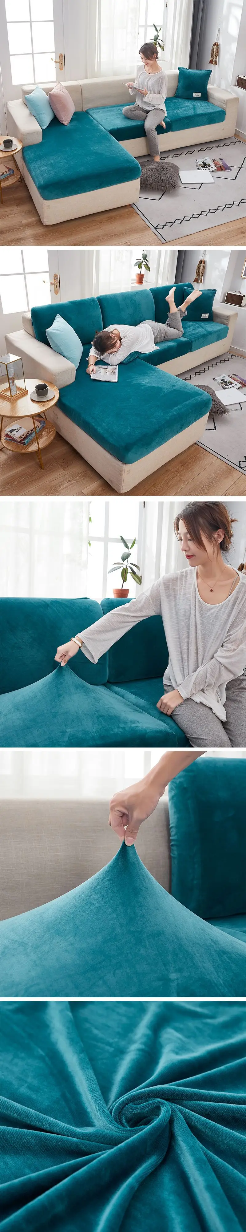 Бархатные эластичные Чехлы для дивана, наборы чехлов для гостиной, ...