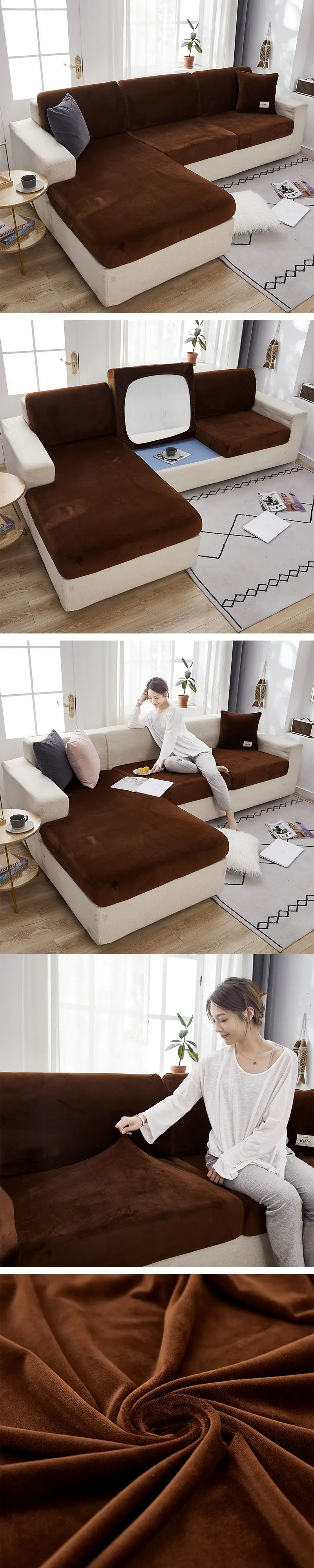 Бархатные эластичные чехлы для диванов, наборы для гостиной, плюшев...