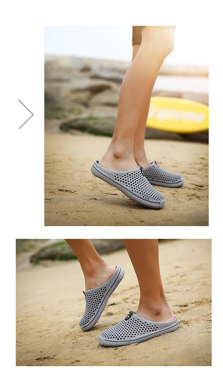 Шлепанцы мужские с перфорацией, дышащие пляжные сандалии, без засте...