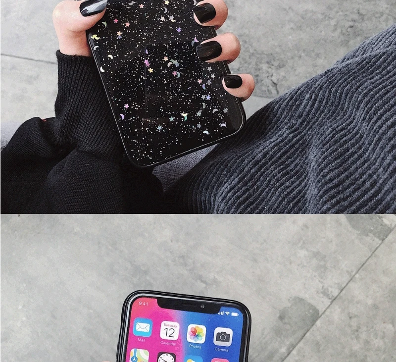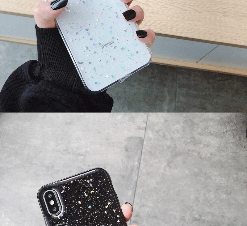 Heyytle Glitter Bling Sequins CaseEpoxy Star Transparent Case For iphone X XR XS MAX 10 Soft TPU Cover