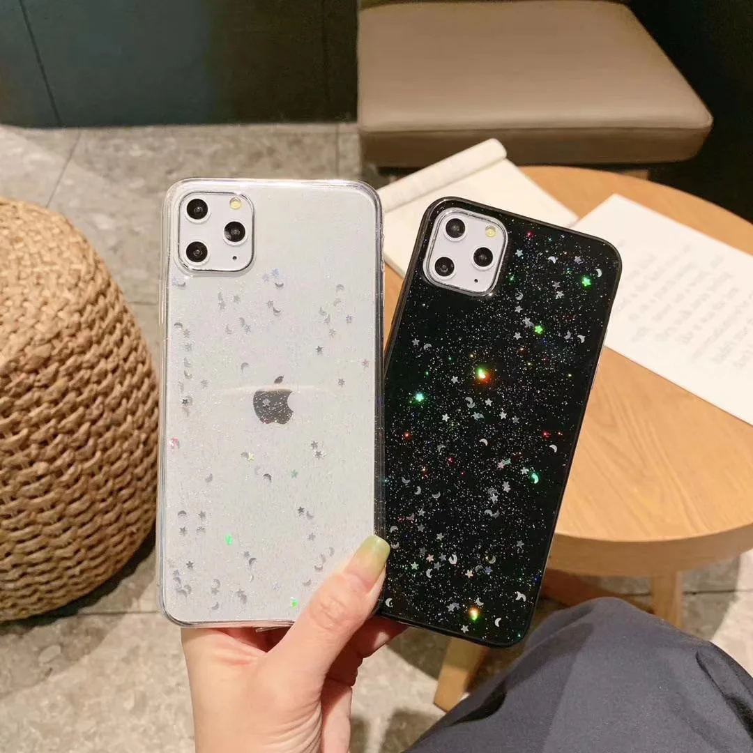 Heyytle Блестящий блестящий чехол для iphone, эпоксидная Звезда Луна, прозрачный чехол, мягкий чехол из ТПУ