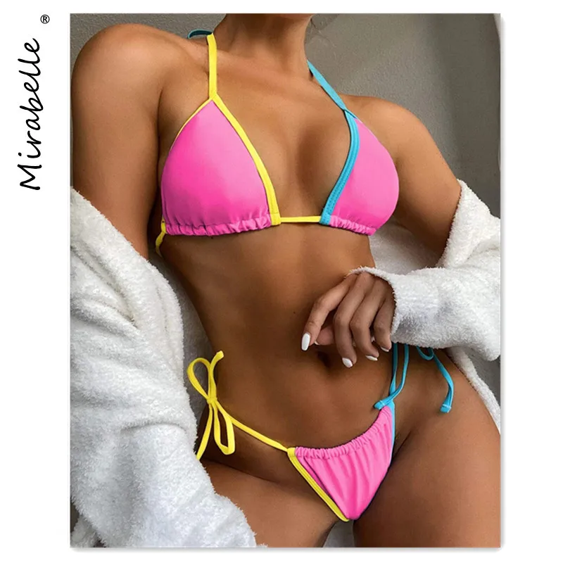 Розовое бикини Mirablle, сексуальный женский купальник с лямкой на шее, сращивающееся Бразильское бикини, купальный костюм, летняя пляжная одежда, новинка 2021