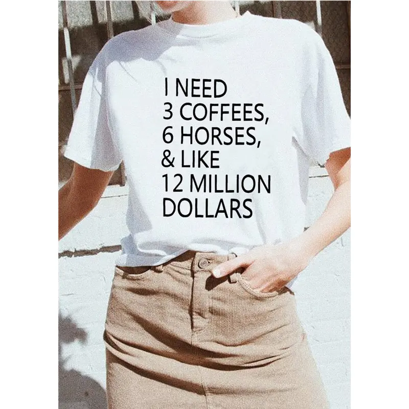 Для женщин, что мне нужно 3 кофе 6 лошадей 12 миллионов долларов эстетический топ из хлопка в уличном стиле, хипстерская прикольная футболка с надписью Футболка с графикой