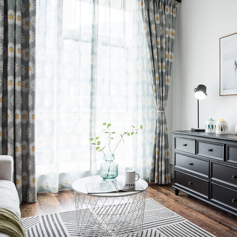 Серый Подсолнух занавески s для гостиной спальни печатные прозрачные цветочные занавески на заказ