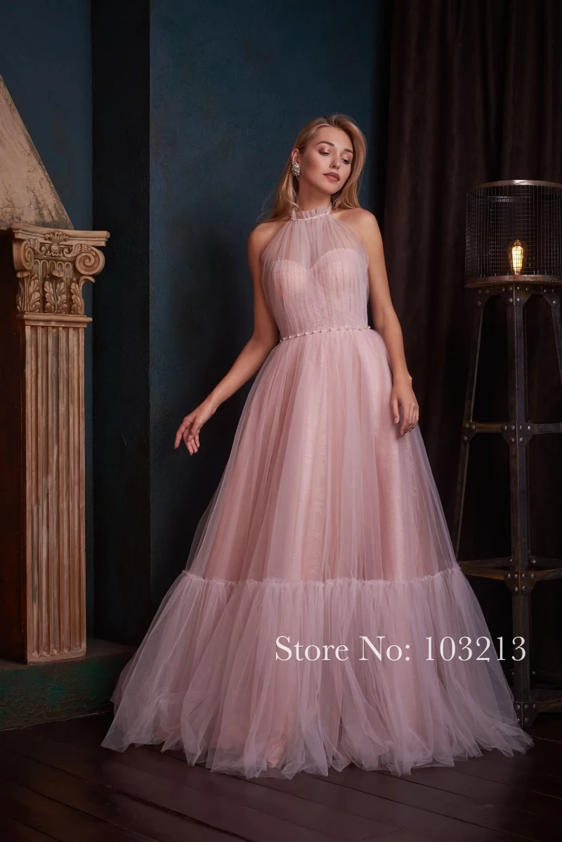 Розовое платье с фатиновой юбкой женское платье до ко дню рождения, вечерние красивые, с полоской через шею, с рюшами; Одежда с короткими рукавами; Пояс, украшенный бусинами платья для выпускного бала, пышное платье принцессы 2021 Новые