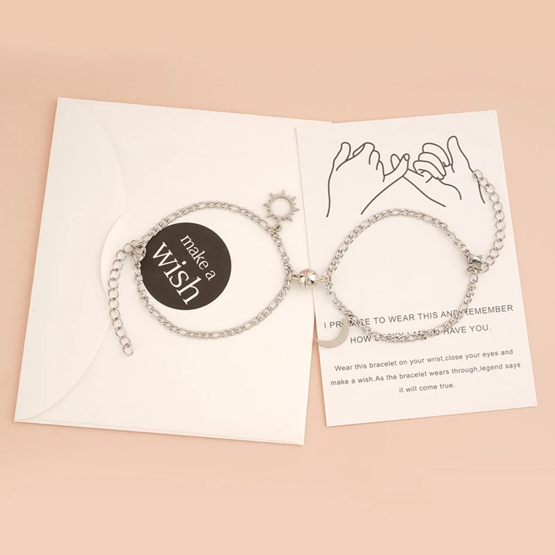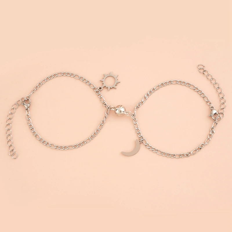 Магнитный браслет из нержавеющей стали с изображением Солнца и Луны для мужчин и женщин, модные регулируемые украшения для влюбленных