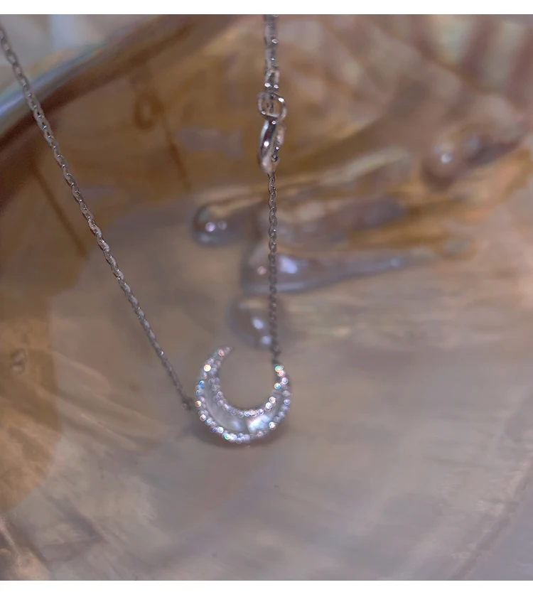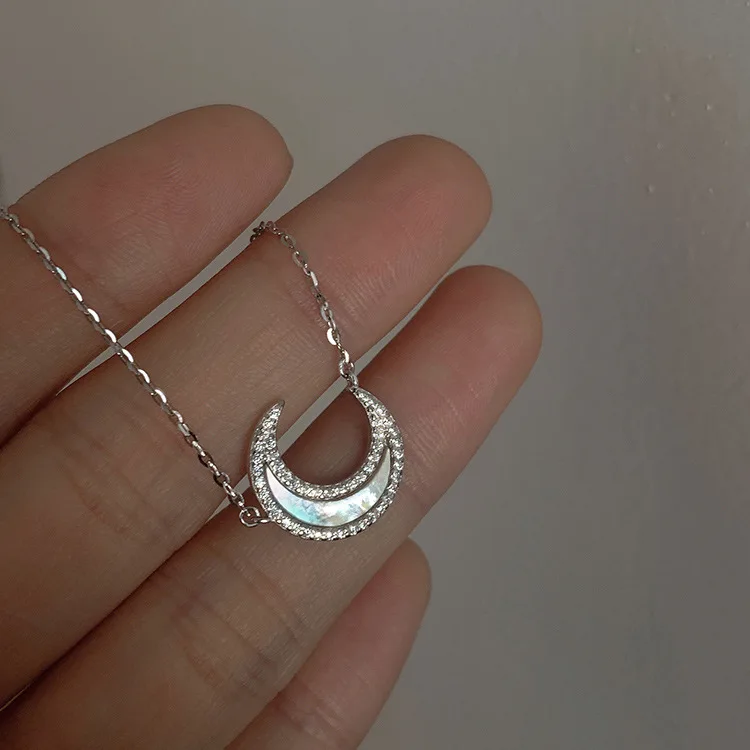 Ливи серебро Цвет микро-инкрустированные Лунная ракушка ожерелье, подвеска, колье, для женщин, цепочка с кулоном колье, ювелирные изделия в качестве подарка