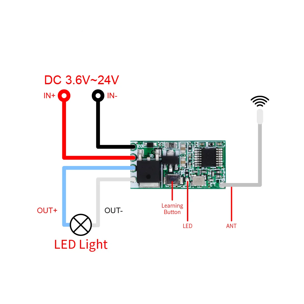 Working Distance20 Meters above in open space. 3V 5V 12V 24V remote control switch