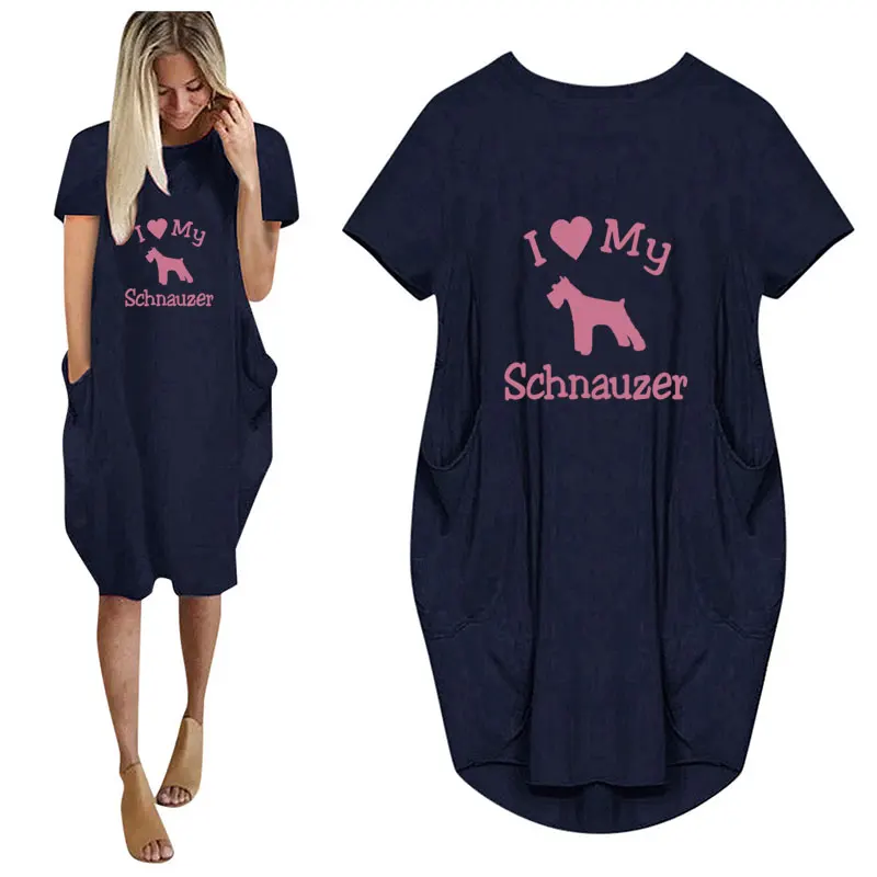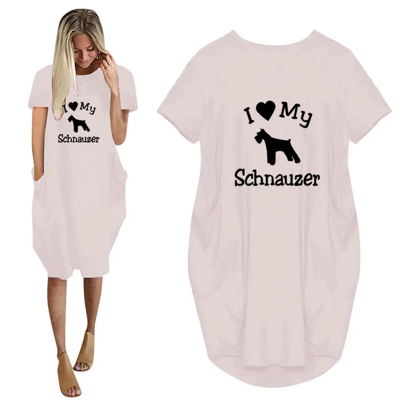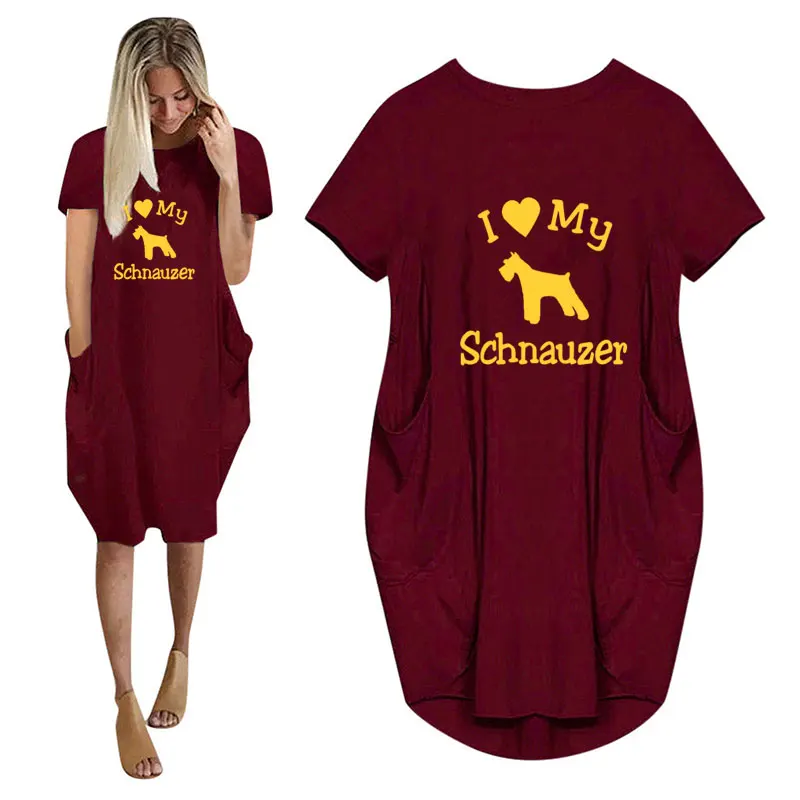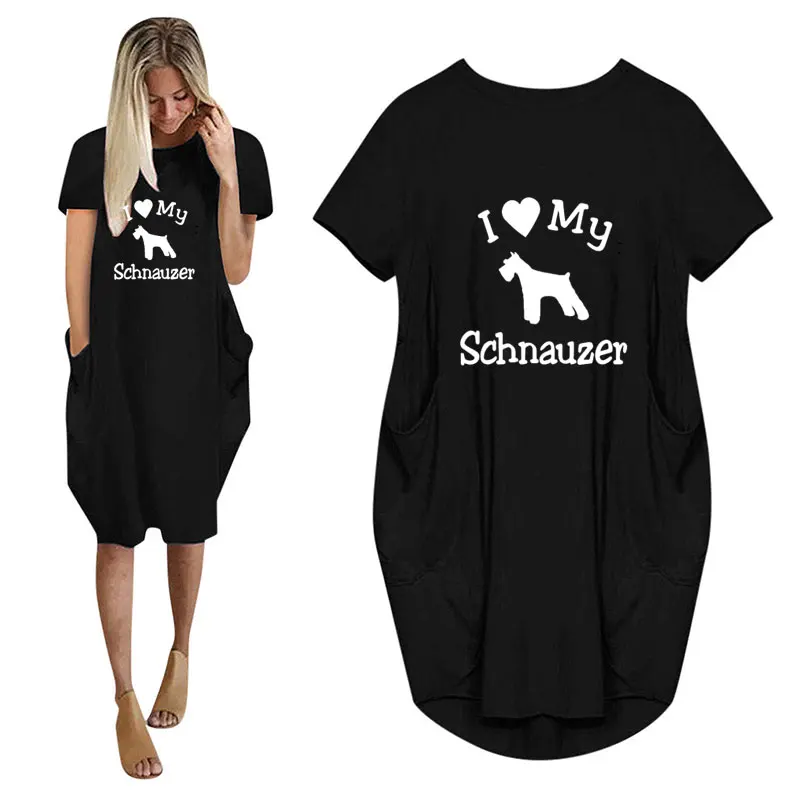 Женское повседневное свободное платье с принтом Я люблю мою собаку, с карманами и круглым вырезом