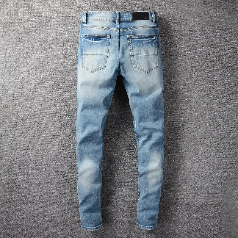 Светильник-голубые уличные рваные джинсы мужские мотоциклетные брюк...