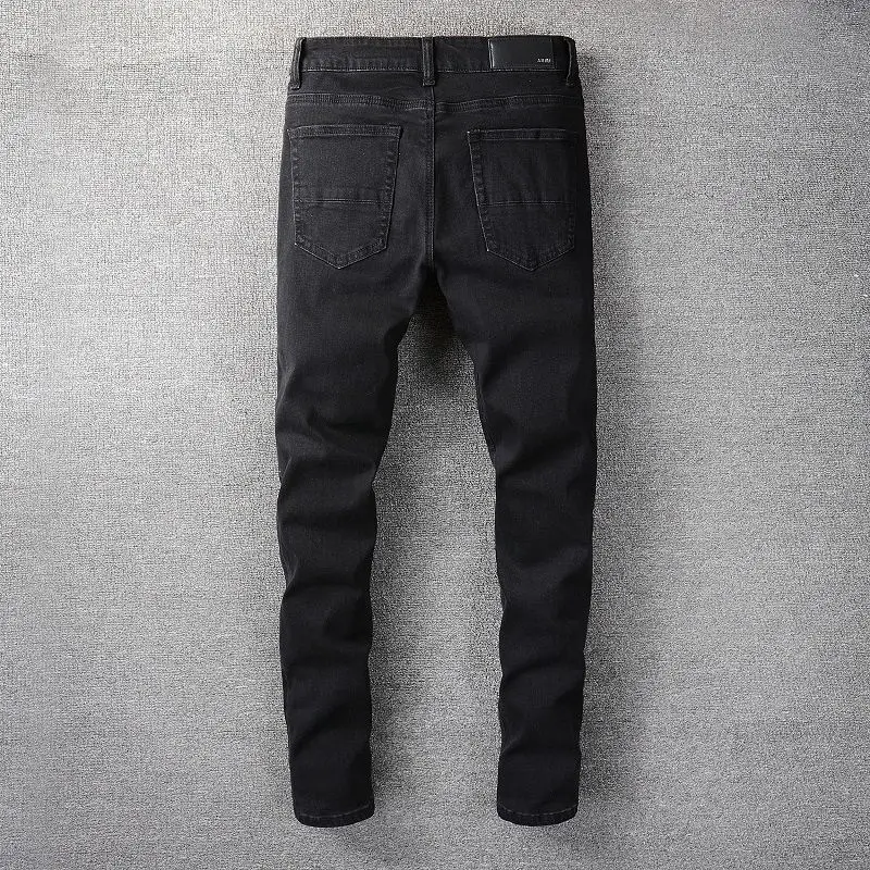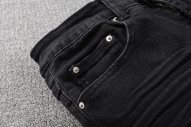 Мужские черные Стрейчевые джинсовые мотоциклетные брюки, модные брендовые джинсы в стиле хип-хоп