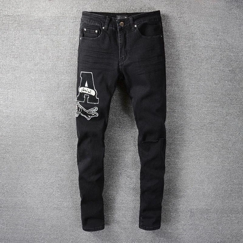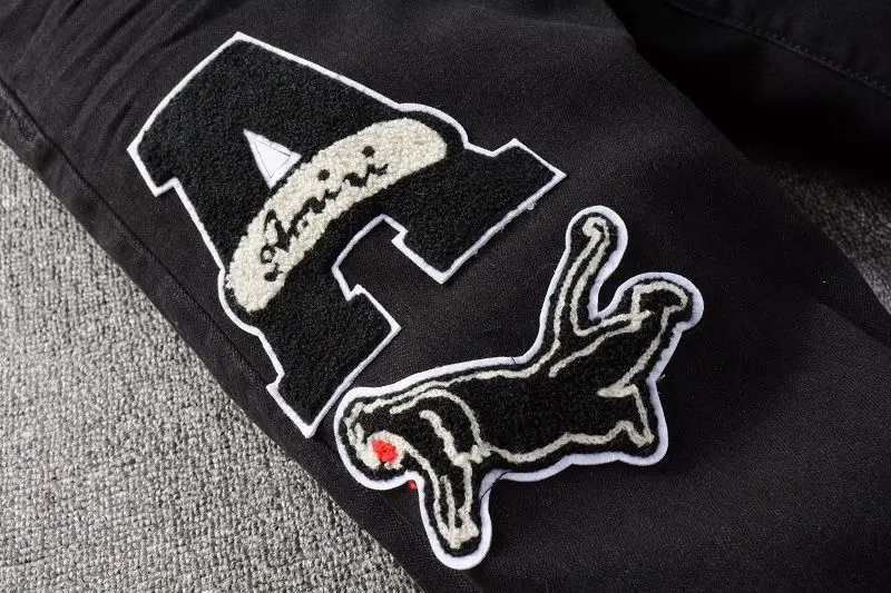 Джинсы мужские, с вышитыми буквами, рваные, зауженные, в стиле хип-хоп