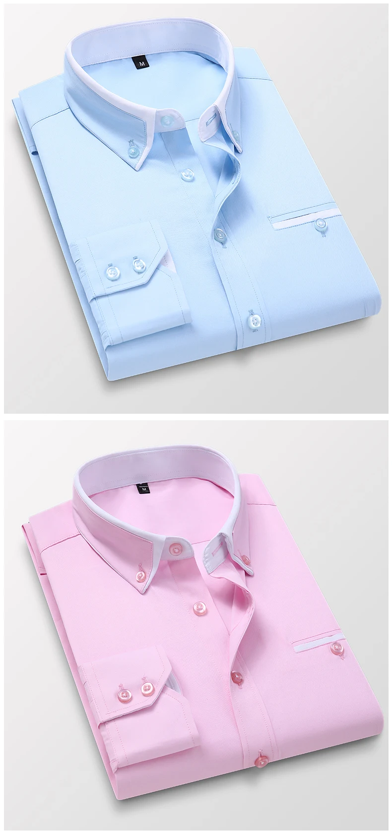 Новинка 2021, осенняя мужская деловая рубашка Luren с длинным рукавом, однотонная модная повседневная Облегающая белая мужская брендовая одежда