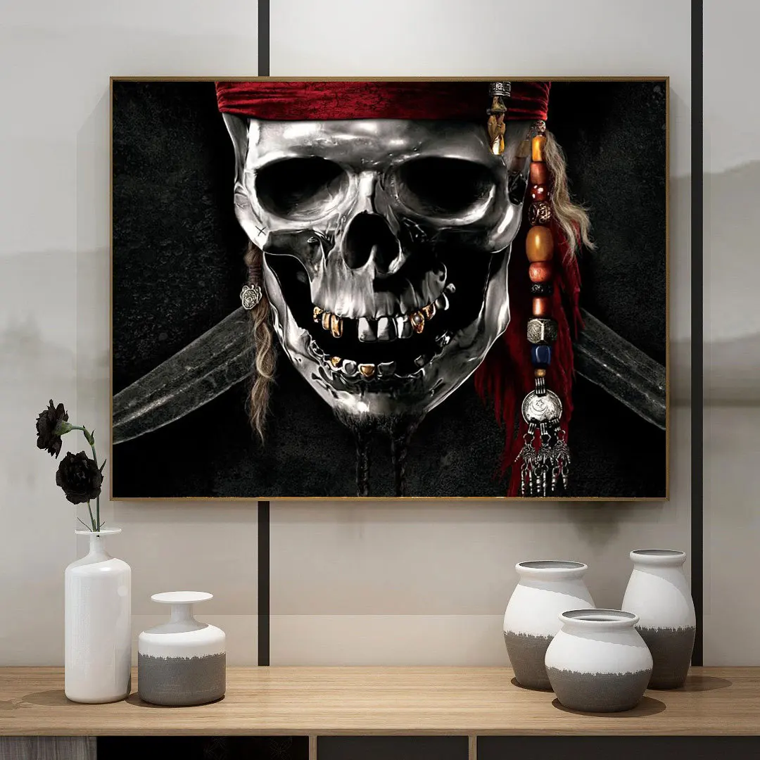 Череп пирата с мечом носить ювелирные изделия Современные настенные художественные плакаты и принты холст картины на стене без рамки для Гостиная домашний декор