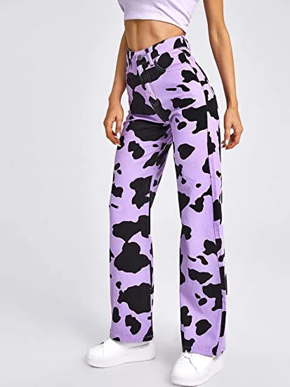 Женские прямые джинсы с коровьим принтом y2k, джинсы большого размера, уличная одежда в стиле Харадзюку, модные мешковатые джинсовые брюки для мам с высокой талией