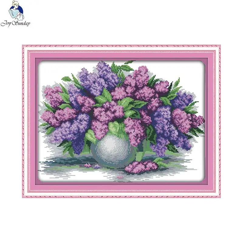 Набор для вышивки крестиком из хлопчатобумажной нитки с принтом сделай сам, ваза с лавандой цветов, 14 карат, 11 карат