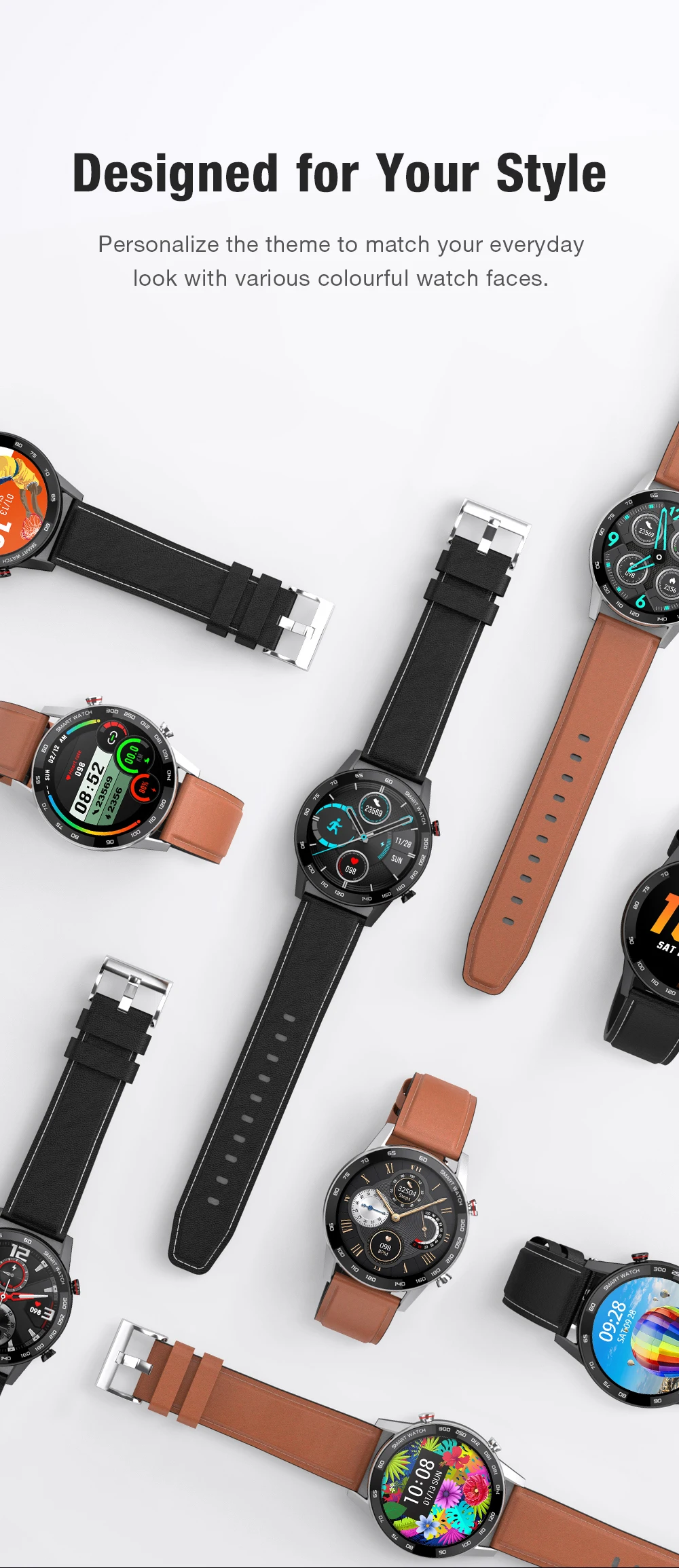 Умные часы SANLEPUS поставляются в различных вариантах ремешка с продуманными цветами и материалами для различных потребностей. Быстросъемные ремни позволяют быстро и легко менять его без каких-либо инструментов.