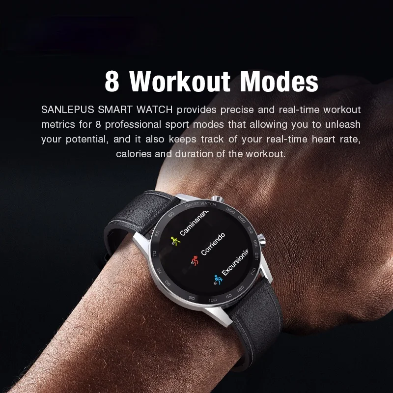 Умные часы SANLEPUS обеспечивают точные показатели тренировки в реальном времени для 8 профессиональных спортивных режимов, которые позволяют раскрыть ваш потенциал, а также отслеживают пульс в реальном времени, калории и продолжительность тренировки.