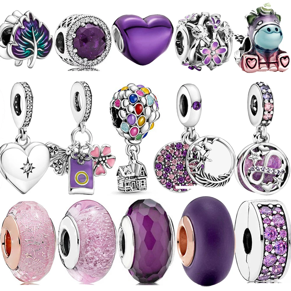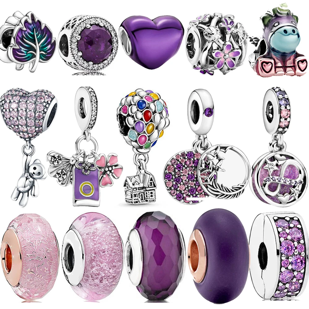 Подвеска-Шарм Маргаритка из серебра 2022 пробы с фиолетовыми листьями