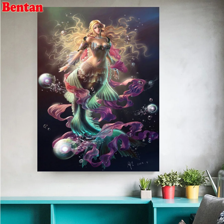 5d алмазная живопись сделай сам, принцесса Русалка, жемчуг, алмазная вышивка, полная круглая мозаика, инкрустированный алмазами узор, подарок для детей