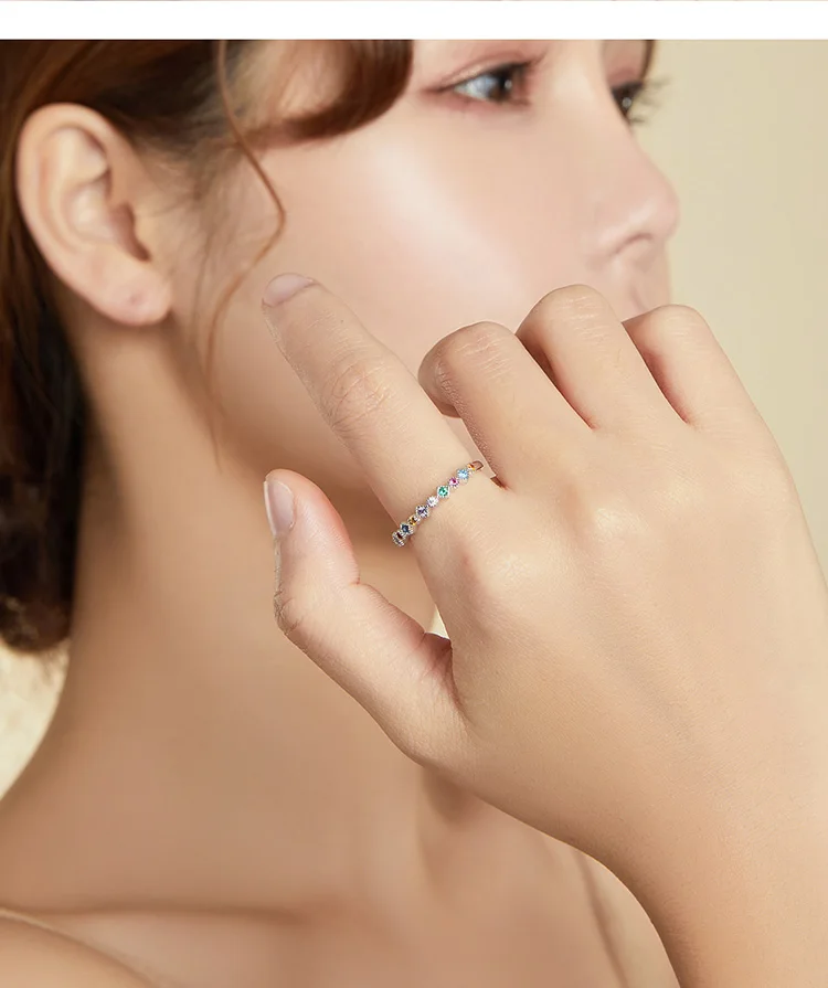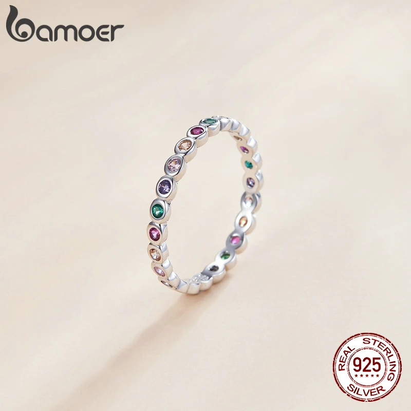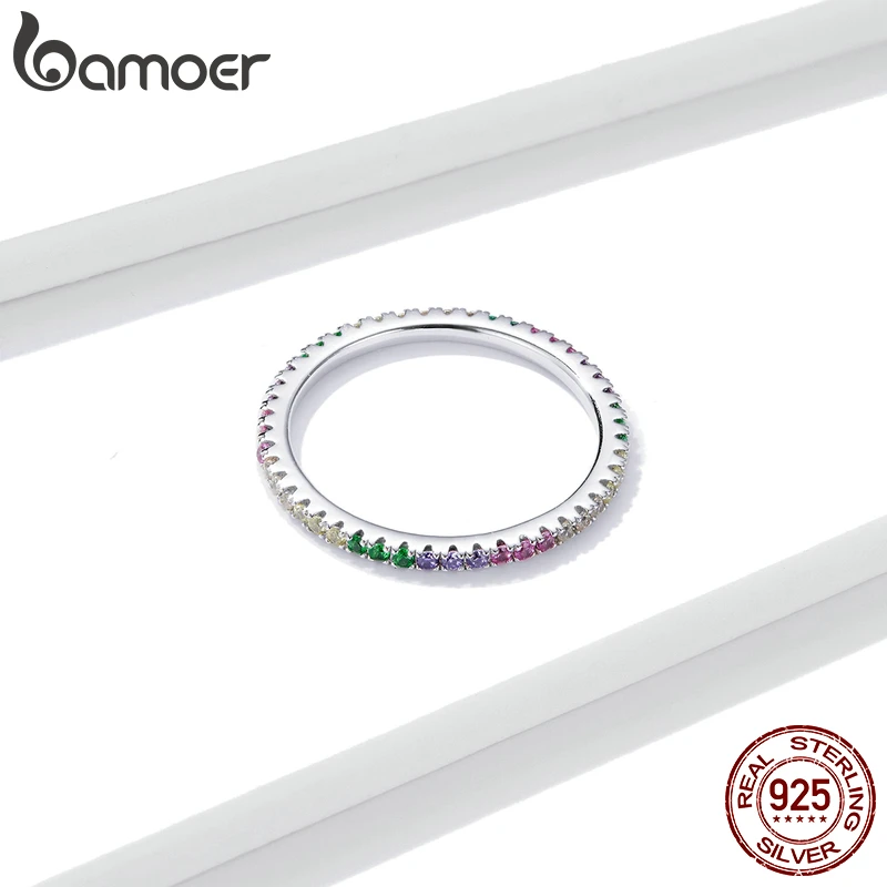 Женское кольцо из стерлингового серебра 925 пробы с радужным цирконием bamoer, модное Сверкающее кольцо с фианитами, подарочное Ювелирное Украшение