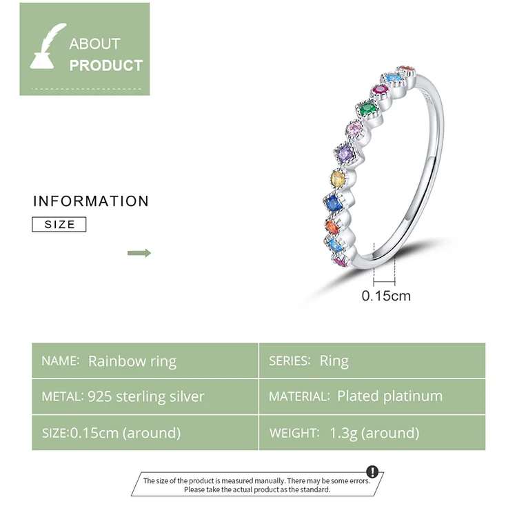 ❤【Description】Inspired радугой, кольцом из радужного циркона, принесет вам удачу на день.❤【Характеристики 】ширина: 0,15 см, вес: 1,1 г.❤【Материал】 Стерлинговое Серебро 925 пробы, Платиновое покрытие и кубический цирконий, твердое Стерлинговое Серебро с 925 штампом, стиль для без никеля, без свинца, без кадмия, гипоаллергенный. Гарантия качества, приятный для кожи, удобный и удобный в носке, не вредный для вашего здоровья.❤【Для подарка 】 это уникальное оригинальное дизайнерское крутое кольцо красиво упаковано и готово для подарка. Купите сюрприз сейчас.❤【BAMOER YOU】 чтобы обеспечить ваше полное удовлетворение, любые вопросы о продукции BAMOER, просто не стесняйтесь обращаться к нам, мы постараемся сделать все возможное, чтобы помочь вам.
