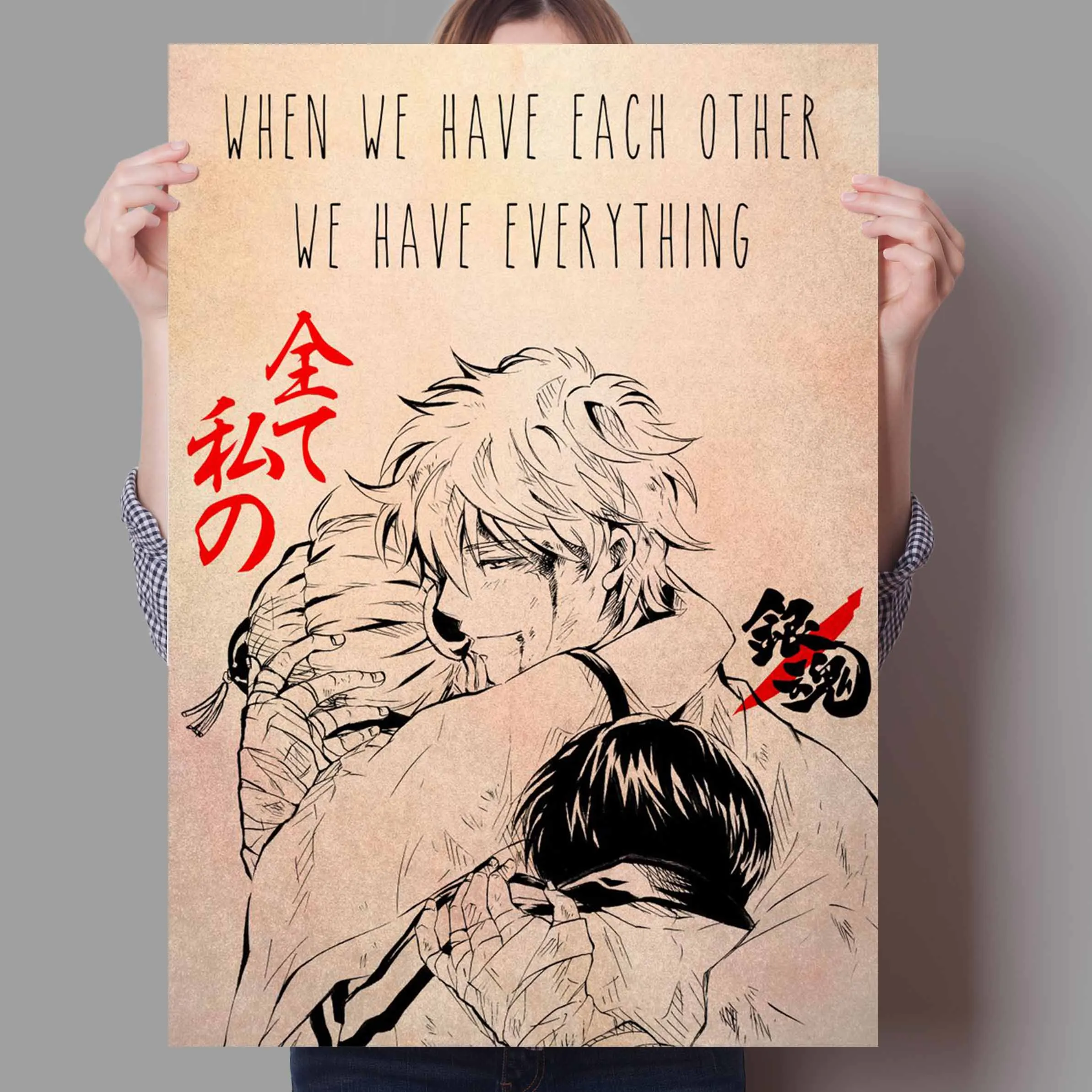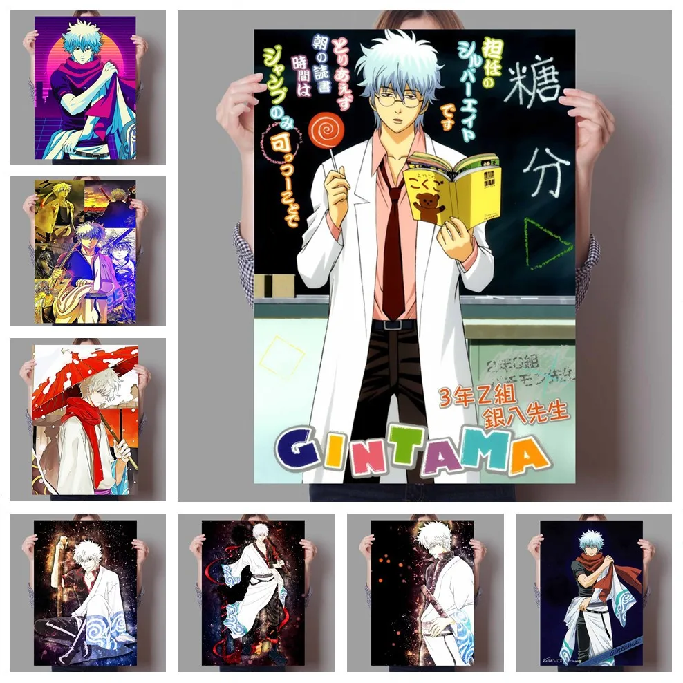 Классическая аниме-фигурка Gintama, Постер, украшение на стену, домашний декор, спальня, детская комната, гостиная, милая комната, Декор, Холщовый постер