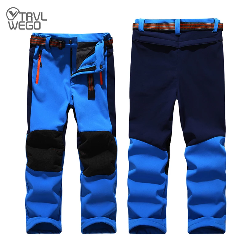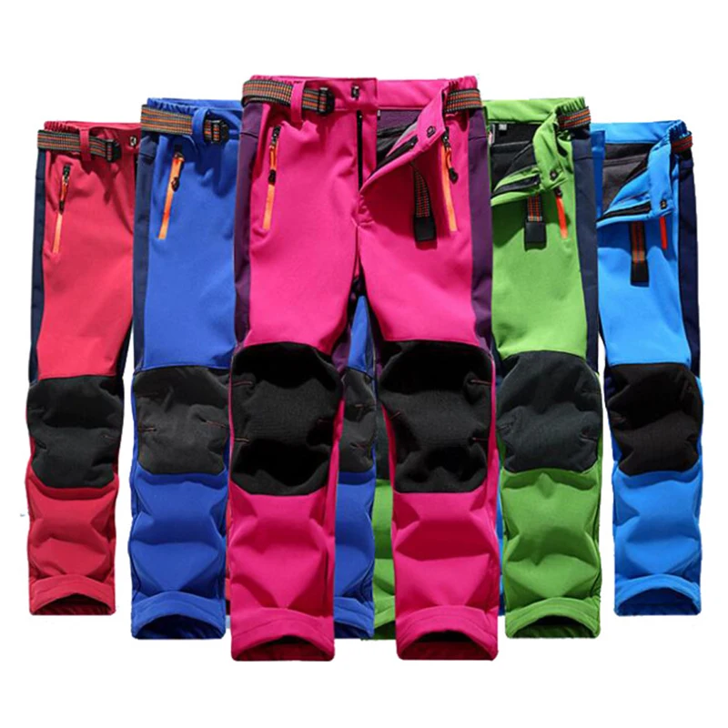 Водонепроницаемые штаны TRVLWEGO, Детские уличные ветрозащитные брюки из мягкого материала для мальчиков и девочек, синие, красные Зимние флисовые теплые походные брюки для детей
