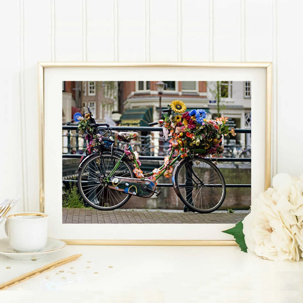 Алмазная живопись Huacan, мозаика с мотивами дрели, цветов и велосипедов, квадратнаякруглая вышивка, речный ландшафт, домашний декор