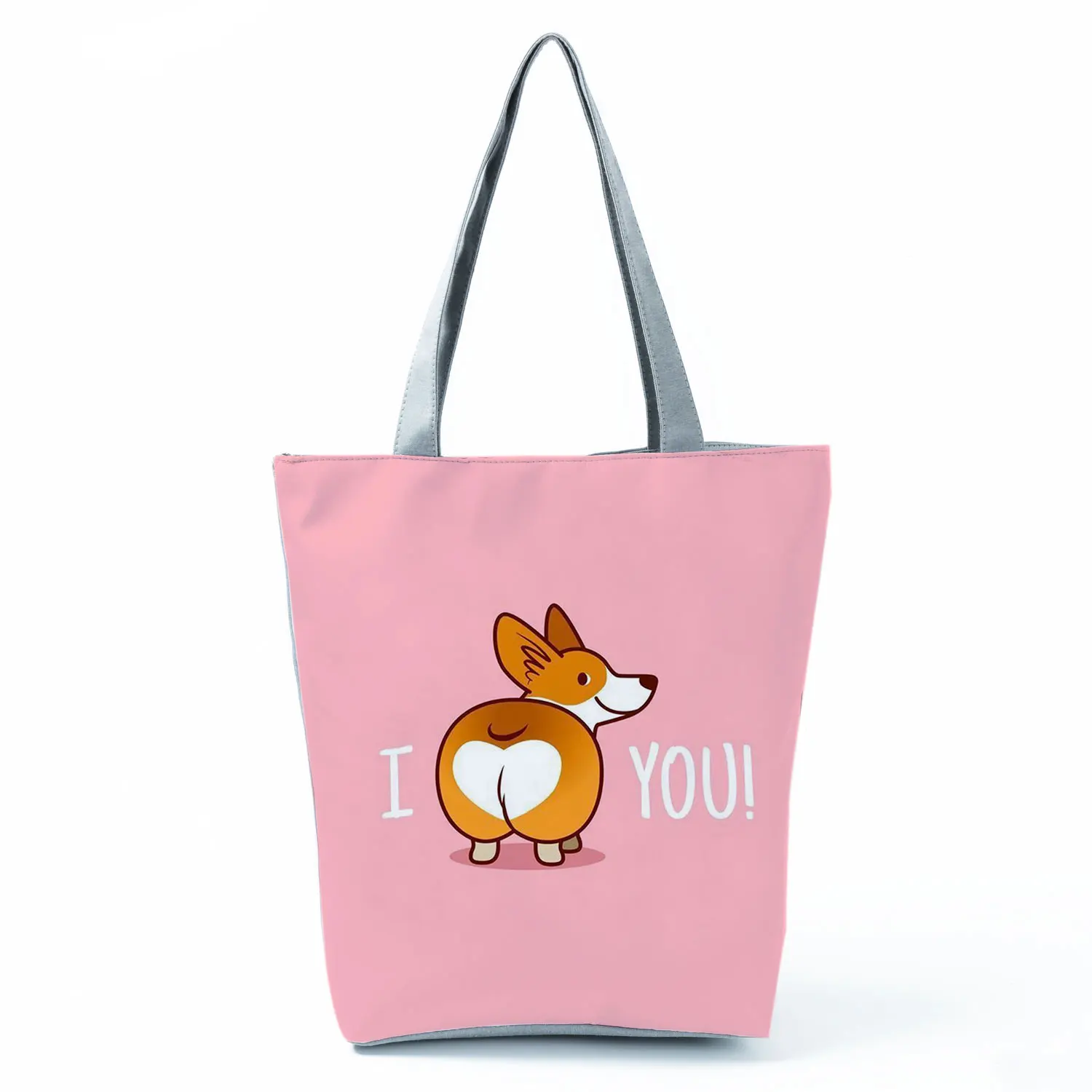 Мультяшная сумка с принтом корги, женская сумка через плечо, вместительная Экологически чистая многоразовая сумка для покупок, Женская дорожная пляжная сумка с индивидуальным рисунком