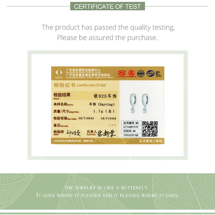 Серьги женские из серебра 100% пробы, с колибри, 925 пробы