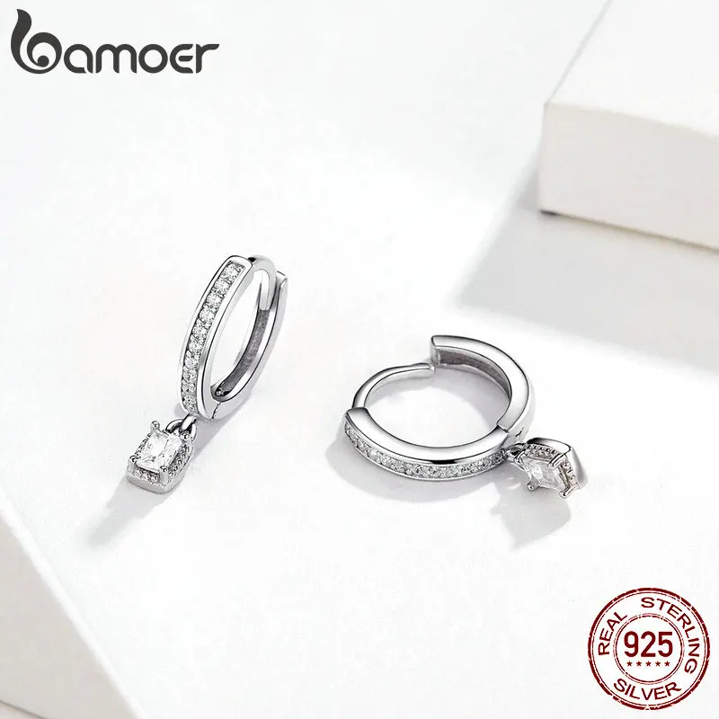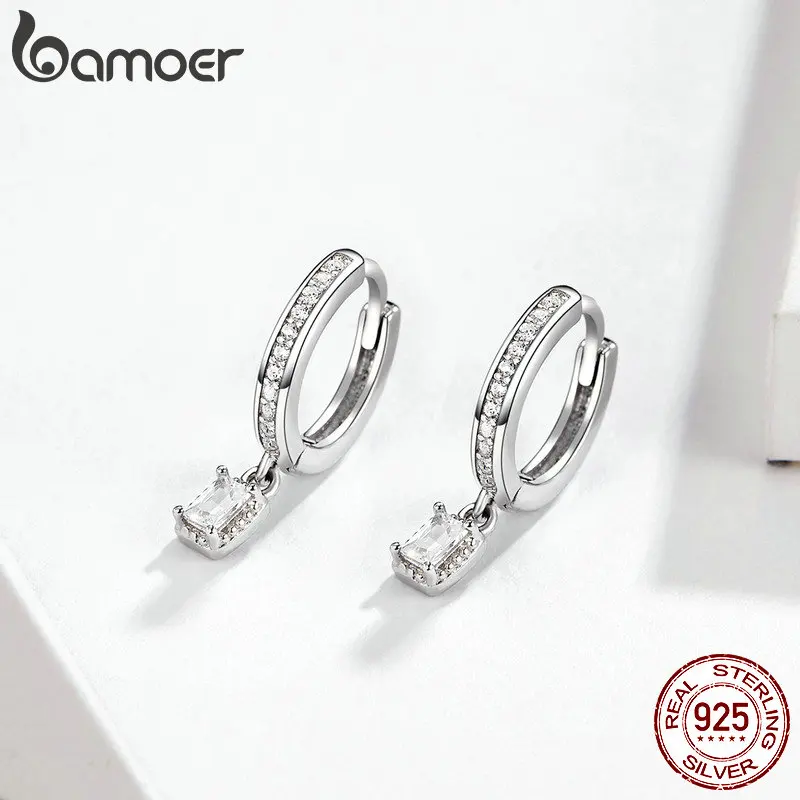 Bamoer CZ квадратные серьги-гвоздики для женщин из стерлингового се...