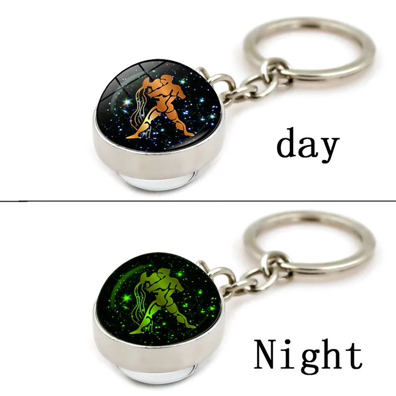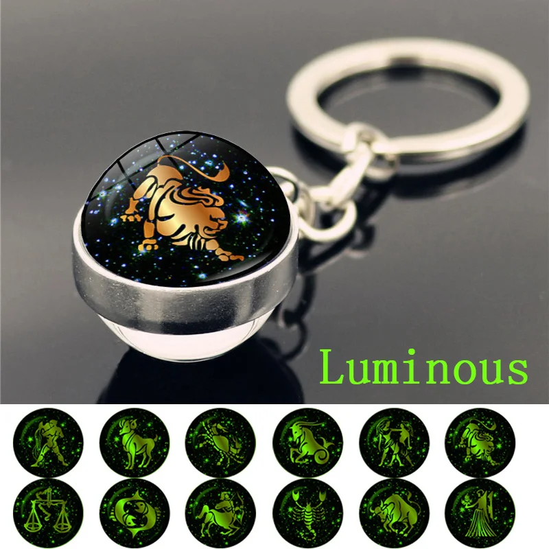 Брелки со знаками Зодиака, оптовая продажа, двухсторонний подвесной брелок со стеклянным шариком, светящийся, 12 созвездий, брелок для автомобильных ключей, женский брелок