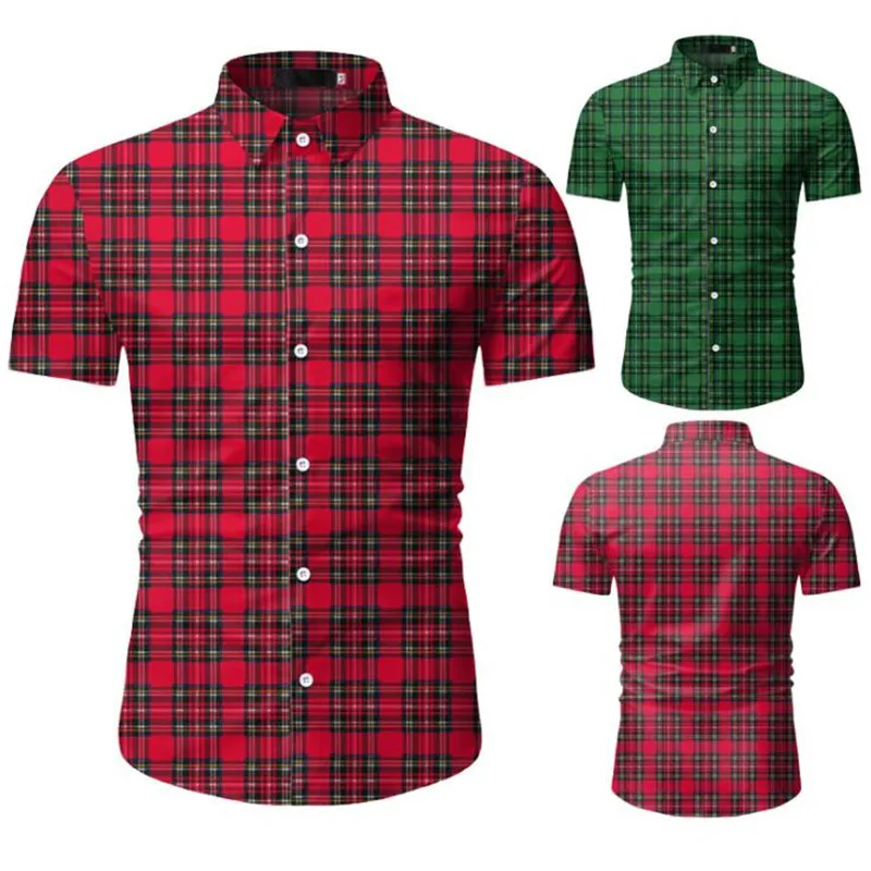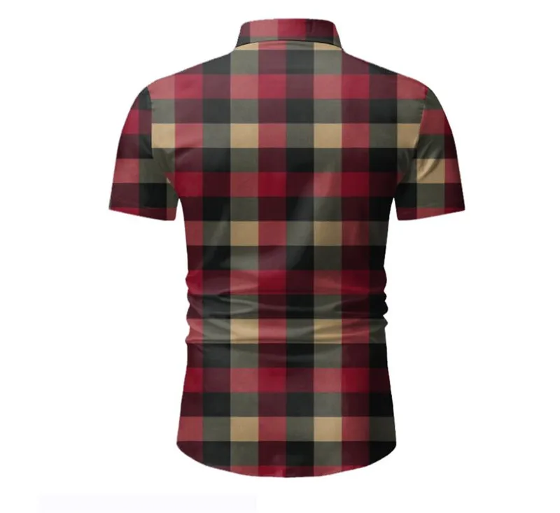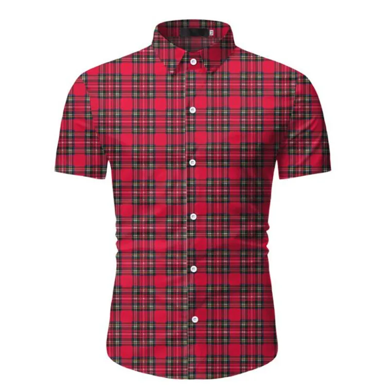 Рубашка мужская классическая в клетку, брендовая Классическая Повседневная Офисная Рабочая одежда с коротким рукавом, на пуговицах, красная, лето 2021