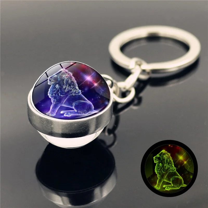 Брелок для ключей со стеклянным шаром, 12 созвездий, светящийся, св...