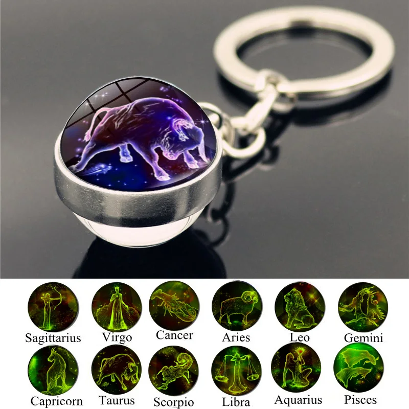 Светящийся брелок в виде стеклянного шара с 12 знаками Зодиака, ювелирный брелок для ключей от машины, женский подарок