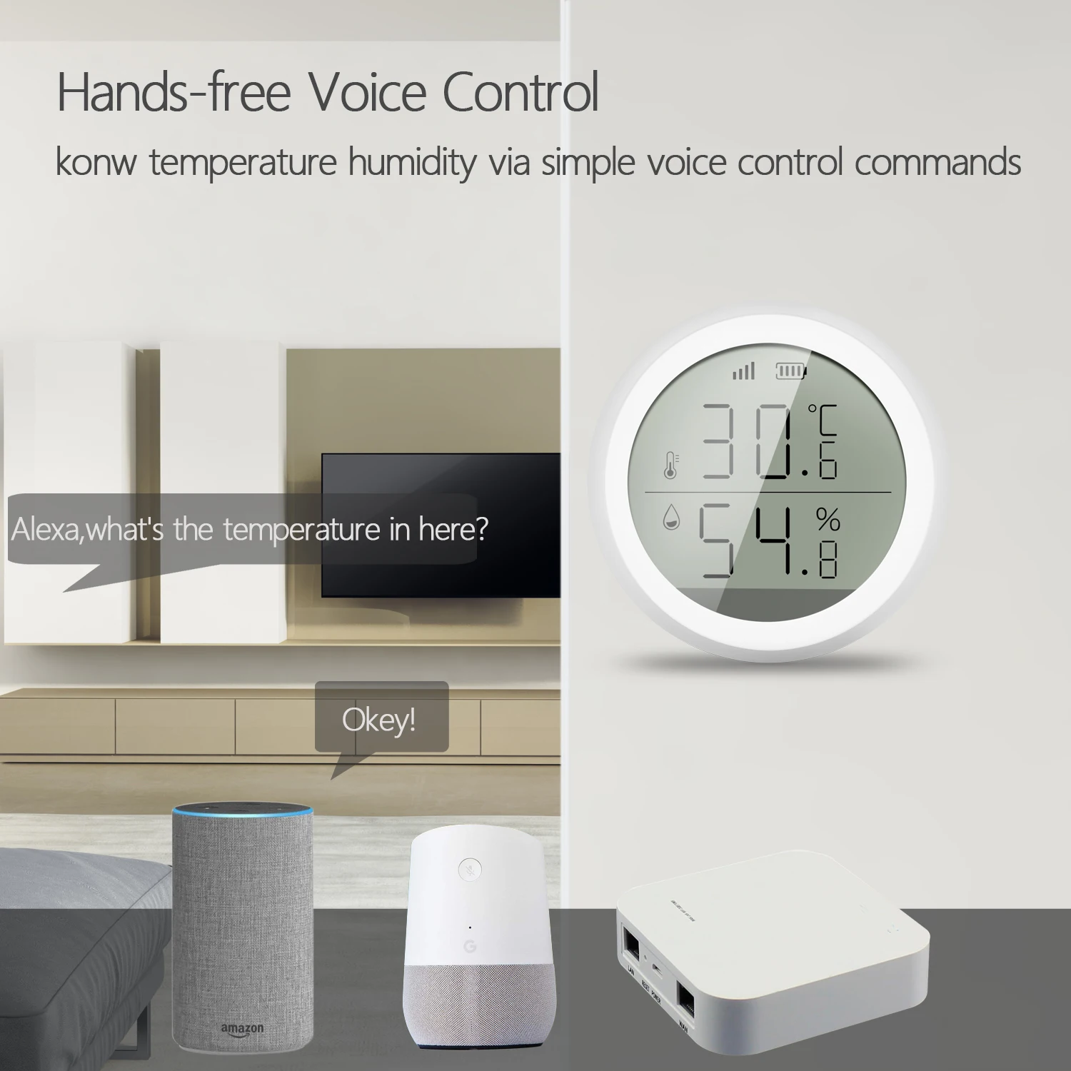Датчик температуры и влажности Tuya Smart Home ZigBee со светодиодным экраном, работает с Google Assistant и Tuya Zigbee Hub