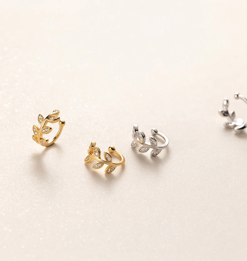 Trustdave Настоящее 925 пробы серебро сладкие листья CZ ушные Клипс...