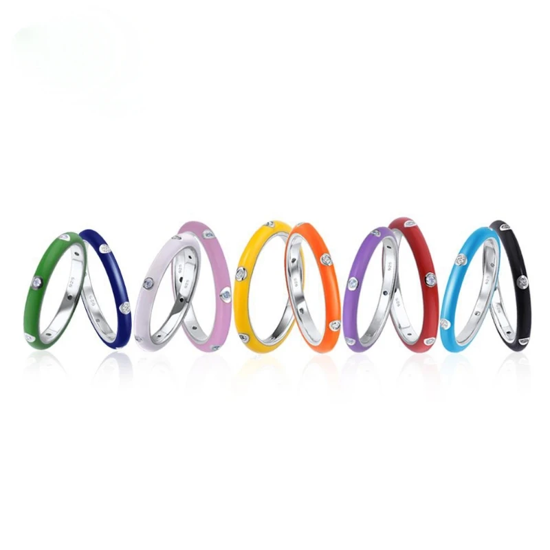 Кольцо с радужной эмалью женское, блестящее Ювелирное Украшение с фианитами, 10 цветов