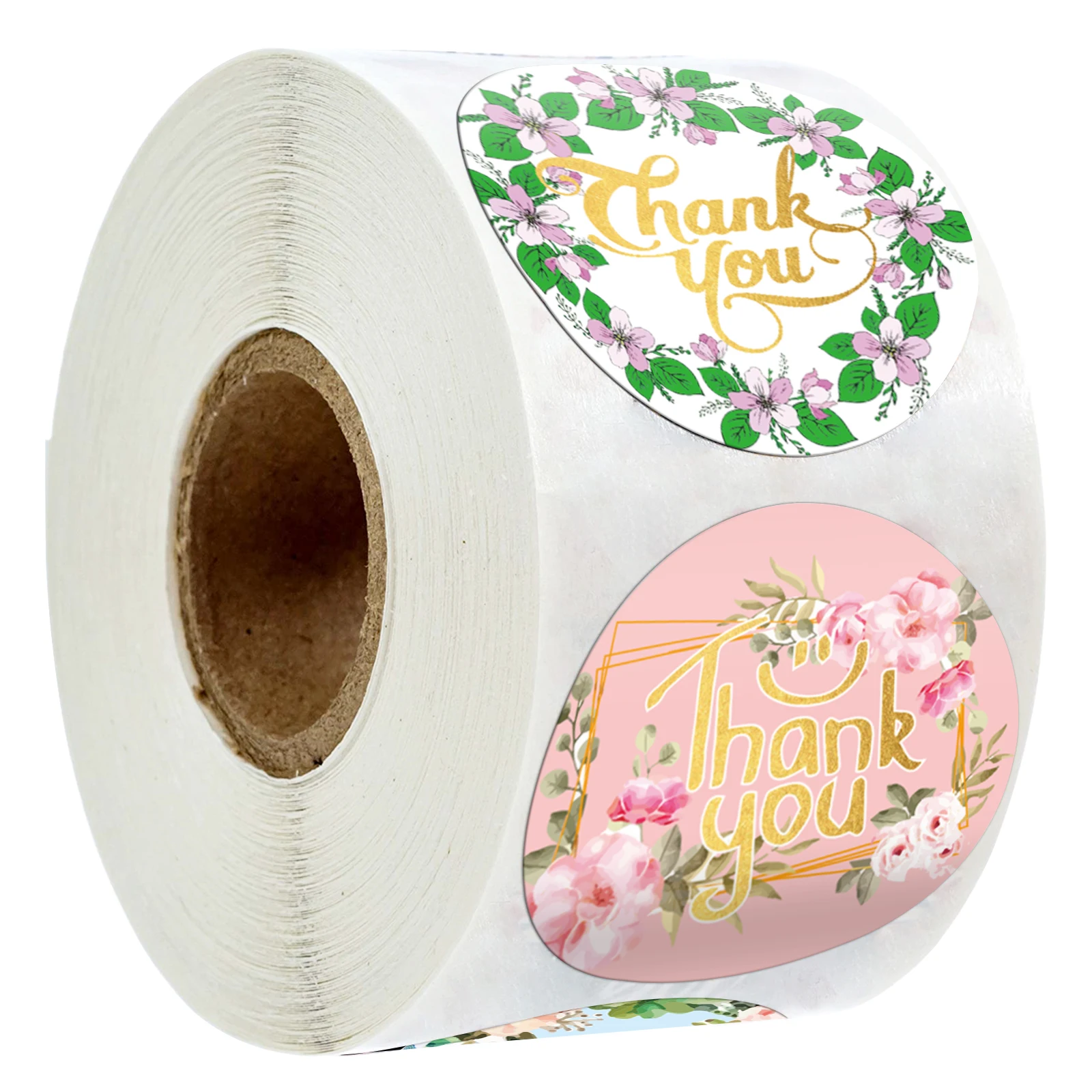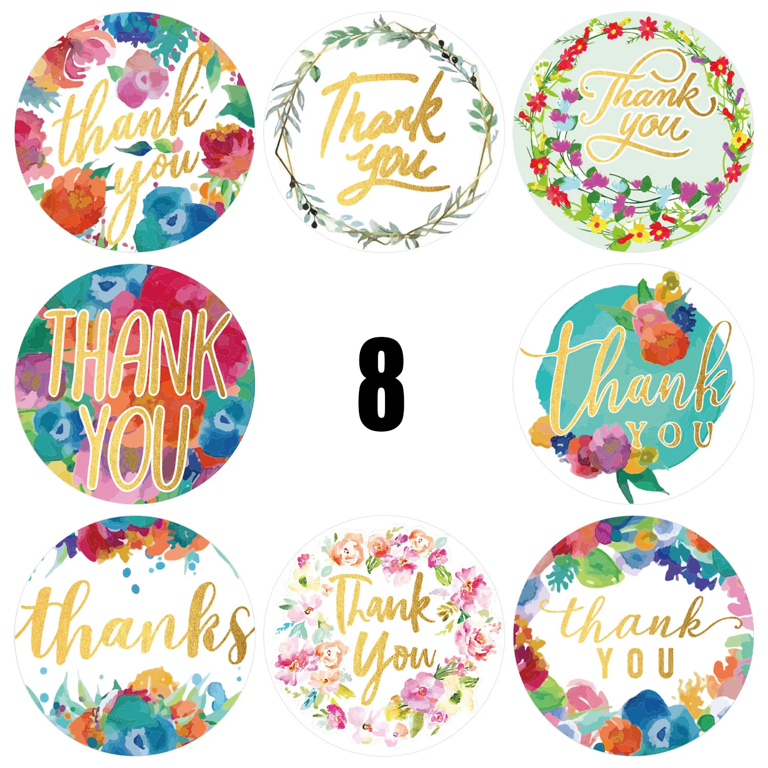 500 шт, круглые наклейки с цветами, спасибо, свадебные вечерние наклейки, подарочные украшения, этикетки, коммерческая упаковка для выпечки, на заказ, эстетические наклейки