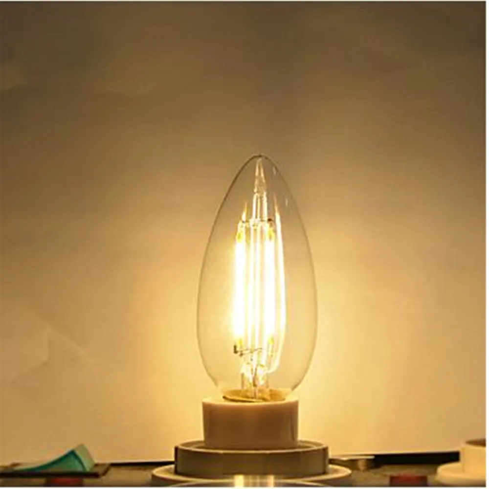 12 шт.лот E14 Ретро Эдисон Светодиодная лампа накаливания Холодныйтеплый белый AC220V-240V C35 стекло винтажная свеча люстра лампа