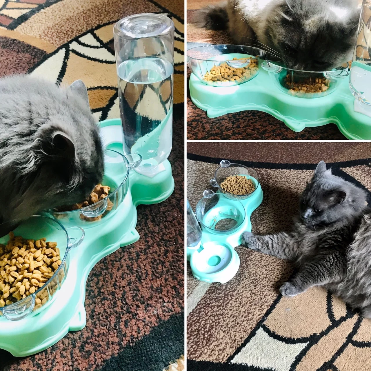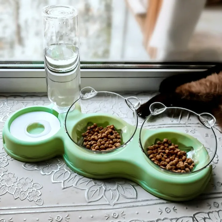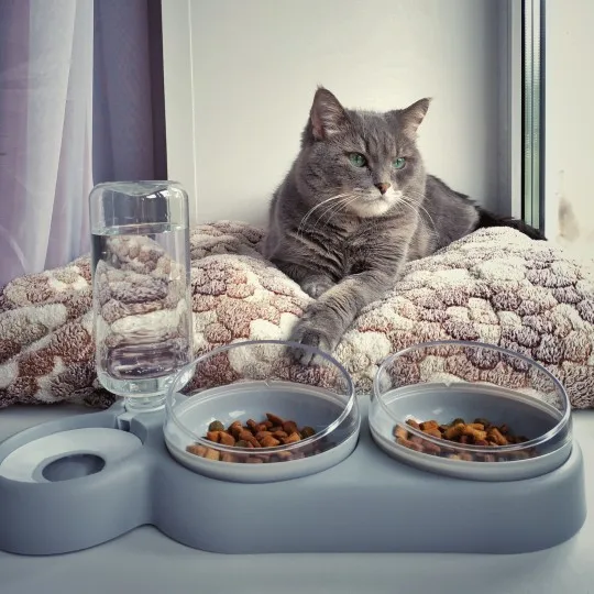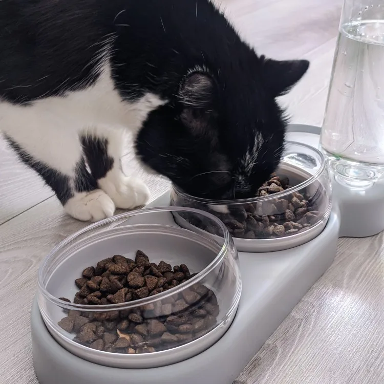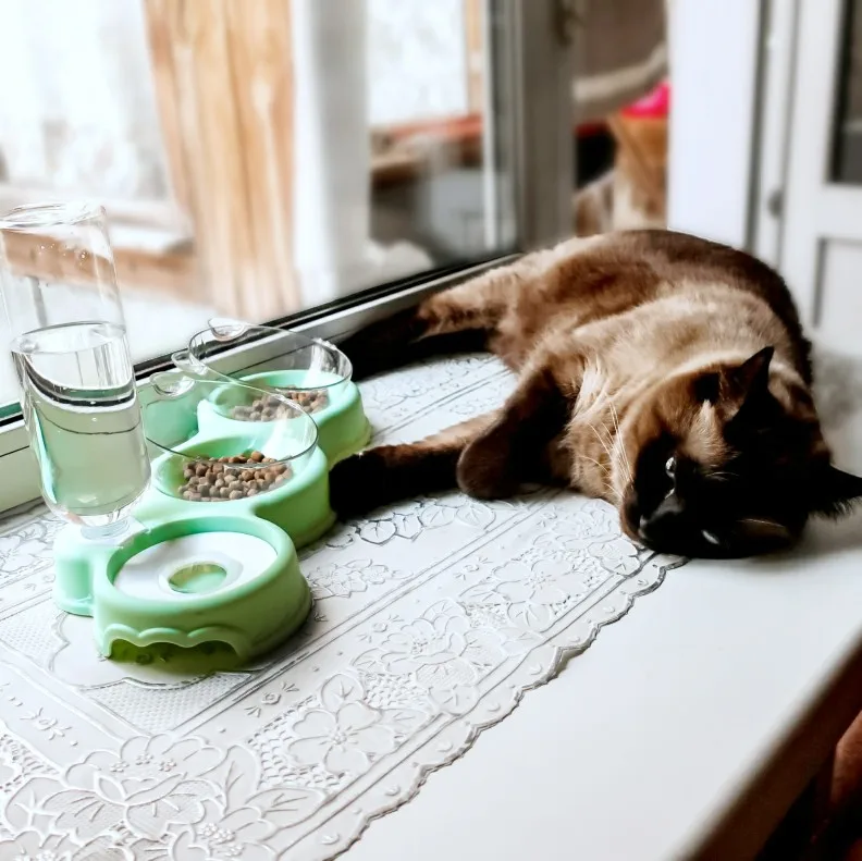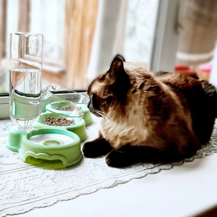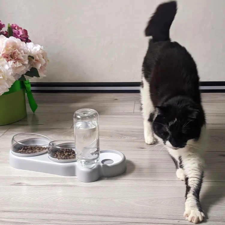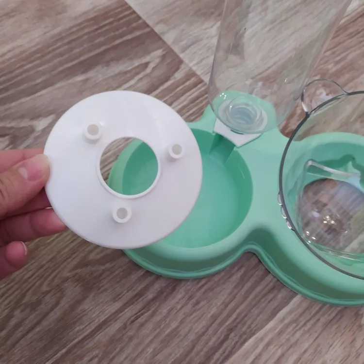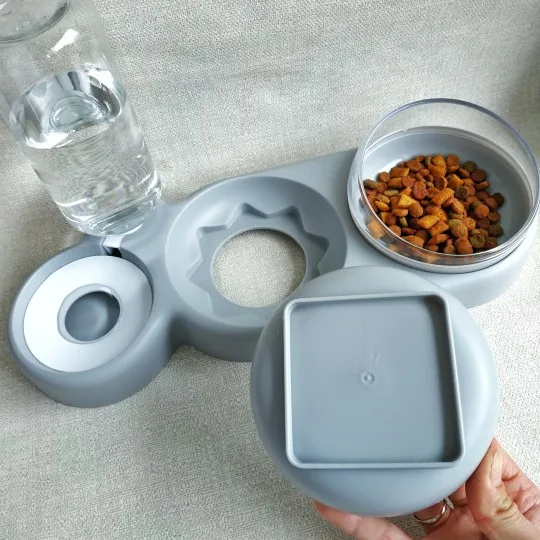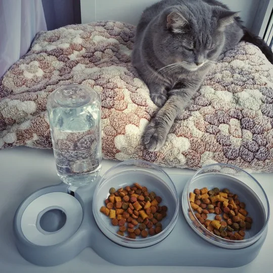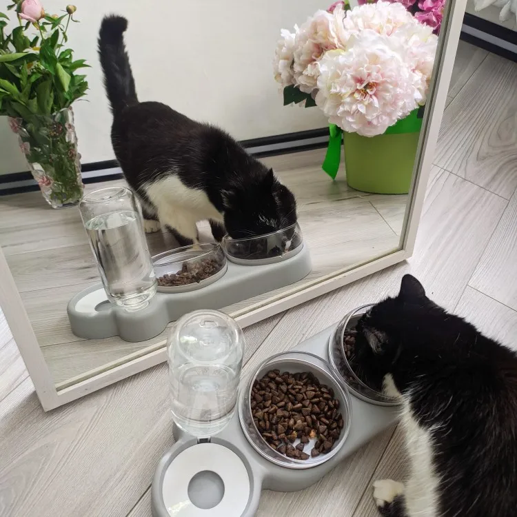 Очень удобная миска с поилкой для кошек, все ёмкости съемные, поилка для воды большого размера, можно оставить кота на несколько дней, вода поступает очень хорошо, котик пьет водичку из неё, ему нравится. В одну ёмкость я кладу влажный корм, в другую ёмкость сухой корм, миски котику очень понравились, доставка была быстрая за 2 недели в Россию, рекомендую продавца)
