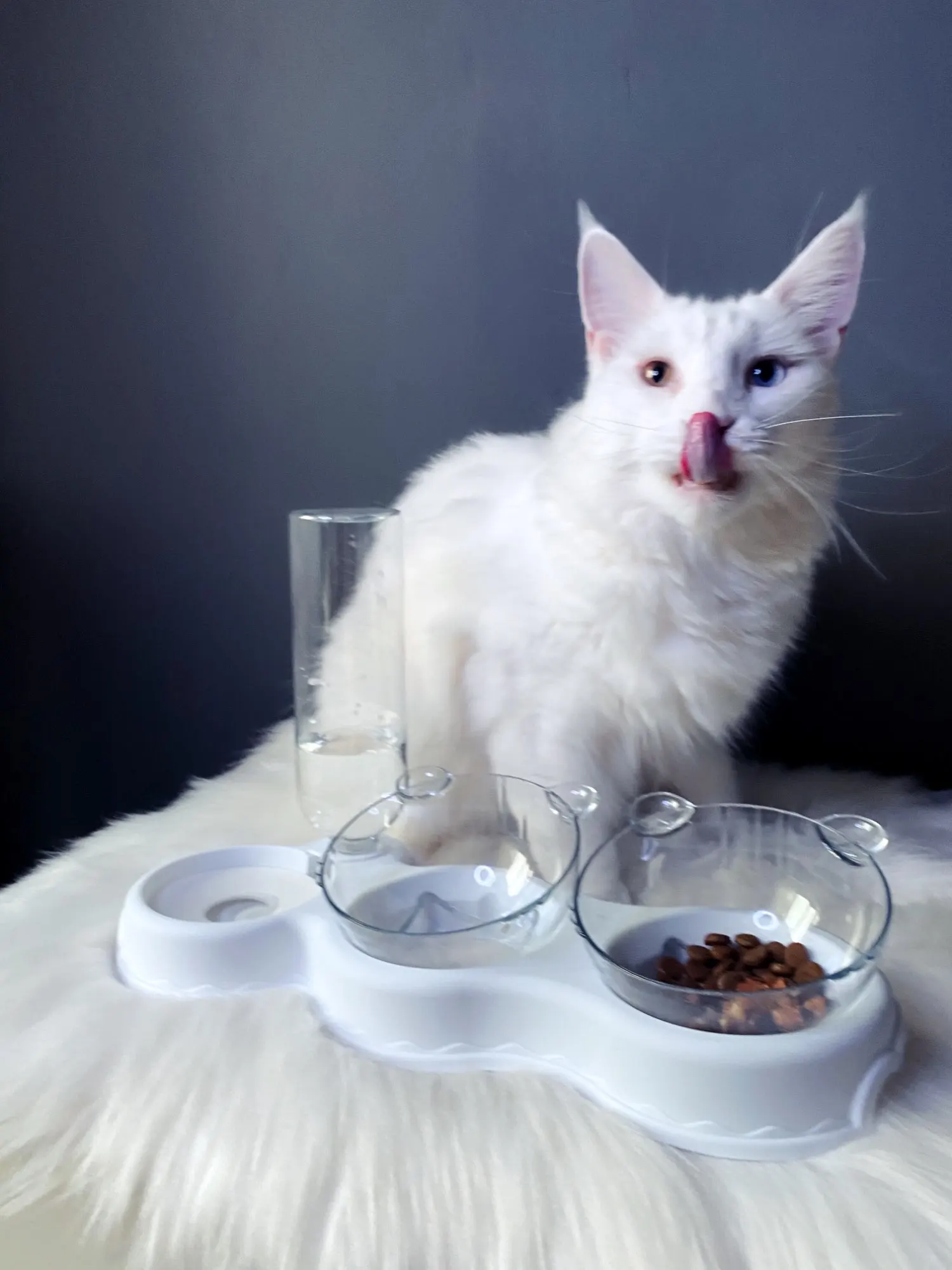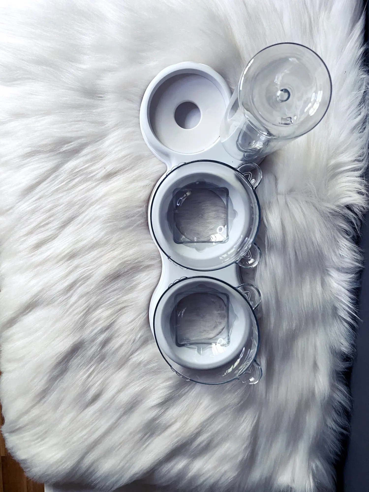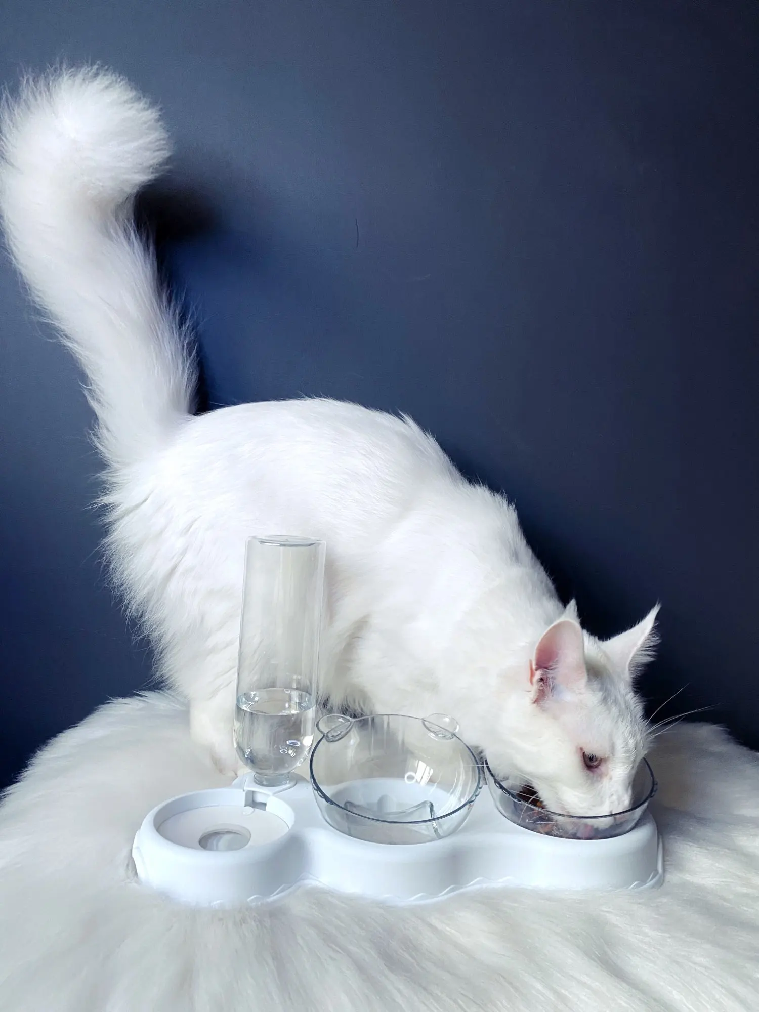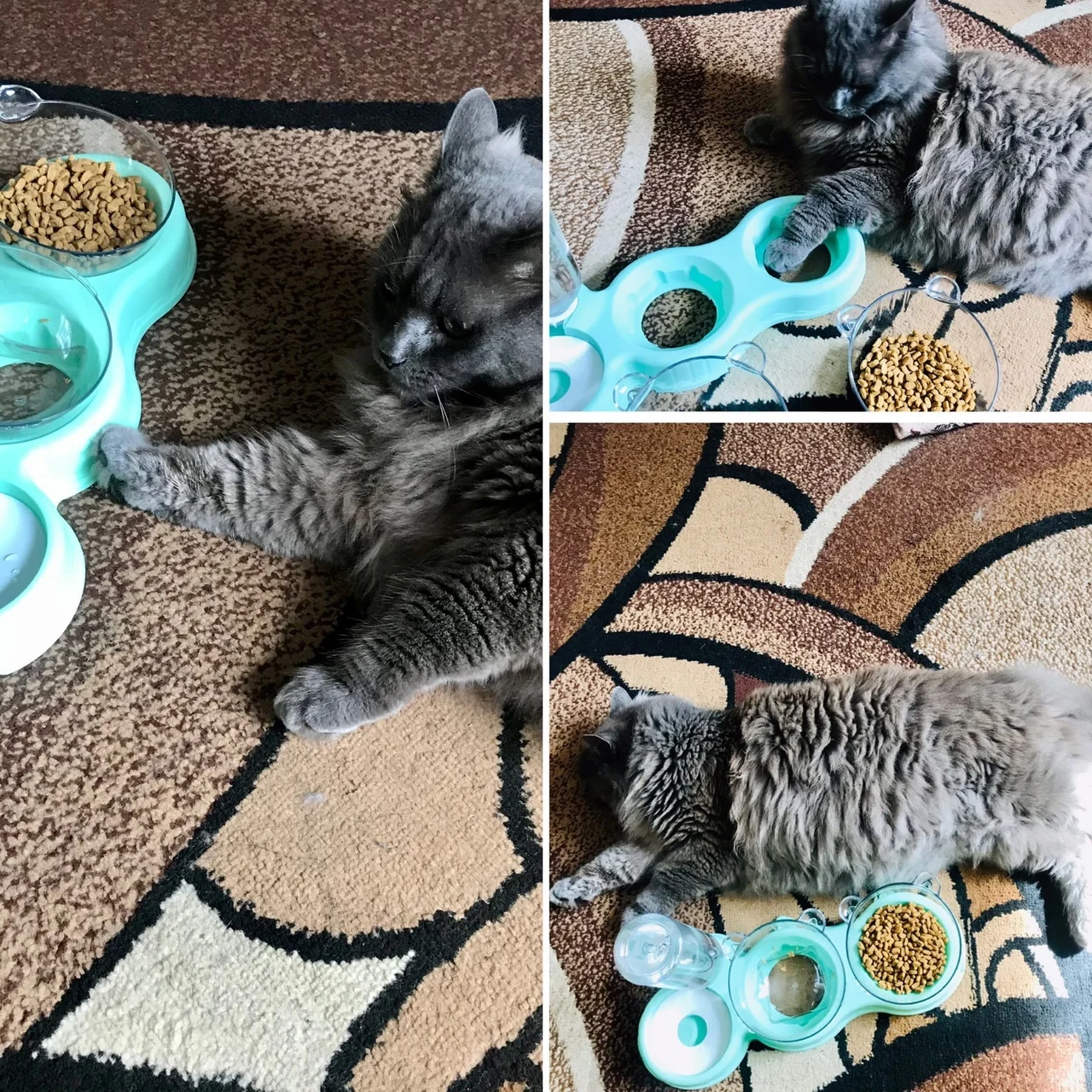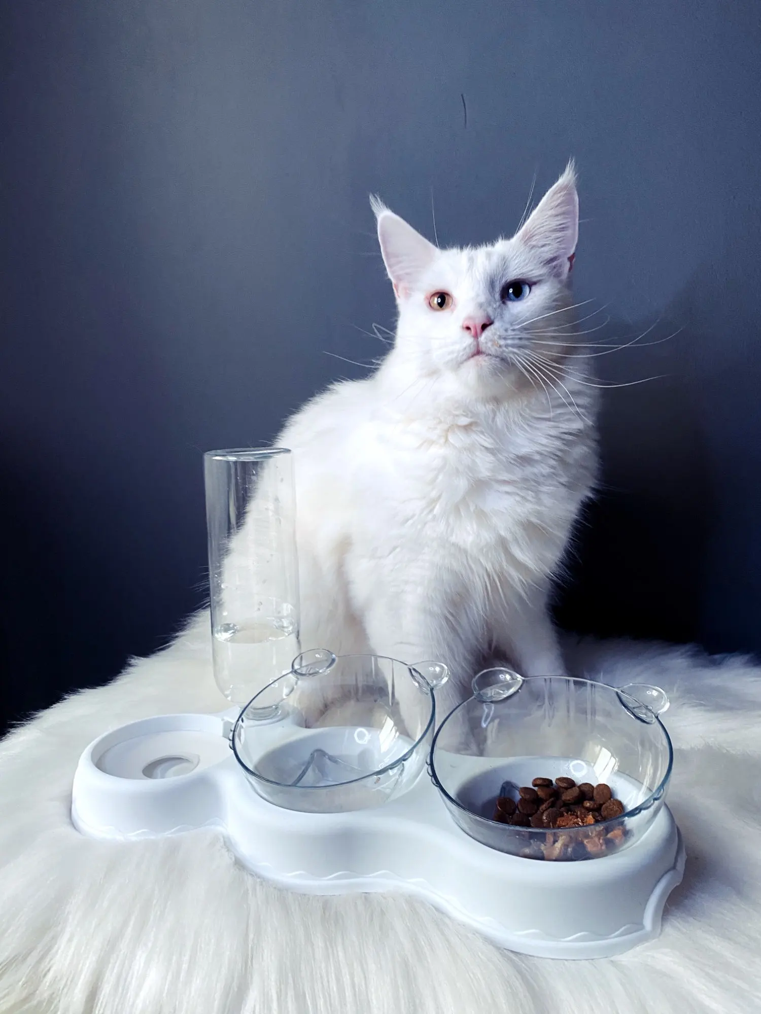 Очень удобная миска с поилкой для кошек, все ёмкости съемные, поилка для воды большого размера, можно оставить кота на несколько дней, вода поступает очень хорошо, котик пьет водичку из неё, ему нравится. В одну ёмкость я кладу влажный корм, в другую ёмкость сухой корм, миски котику очень понравились, доставка была быстрая за 2 недели в Россию, рекомендую продавца)