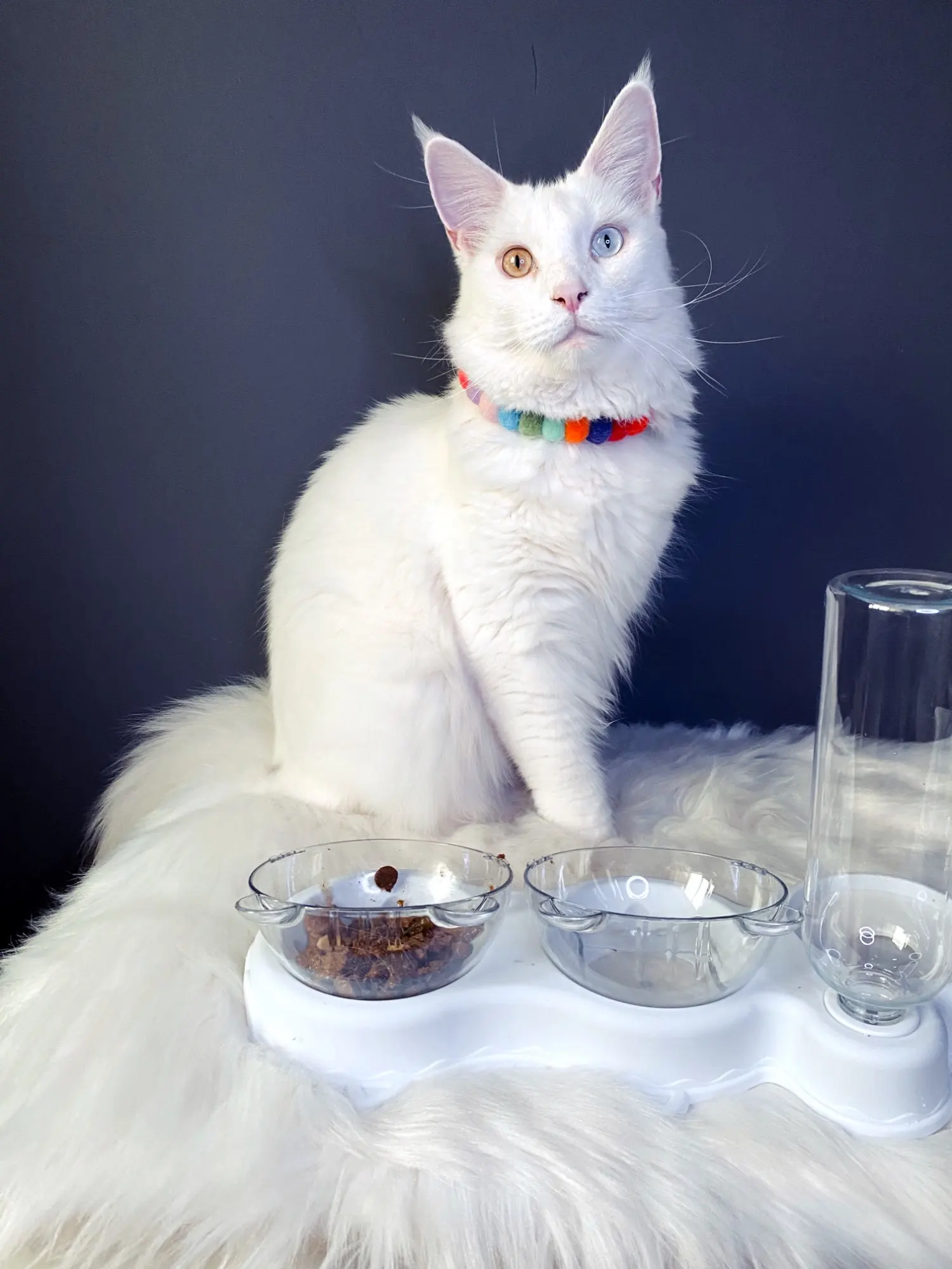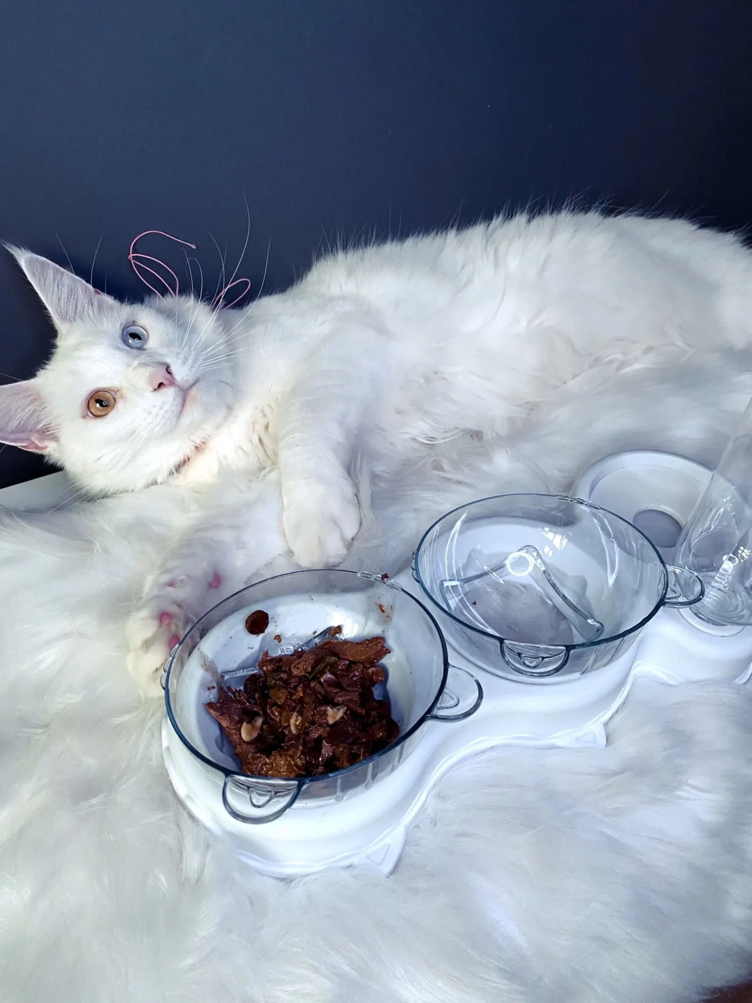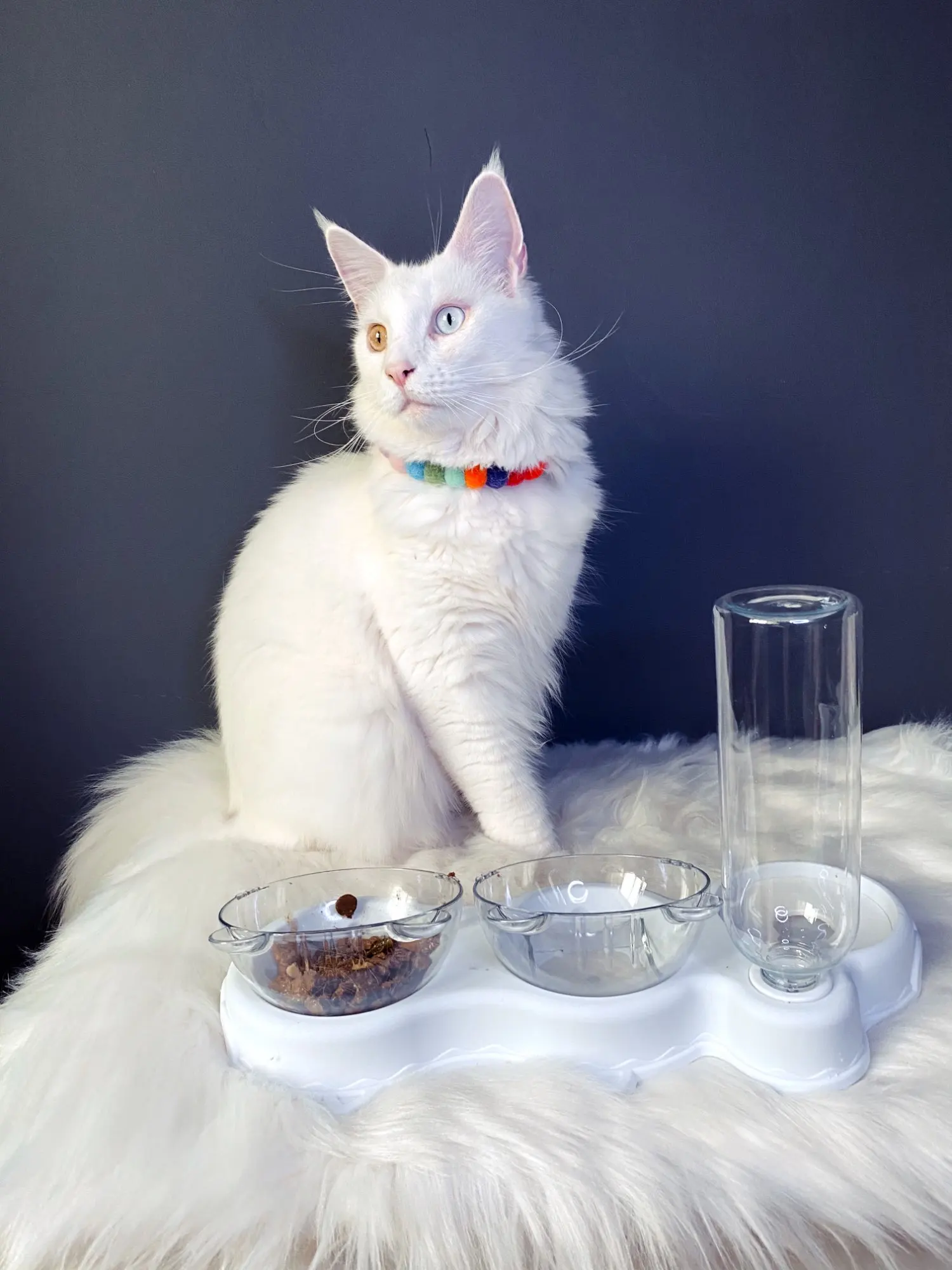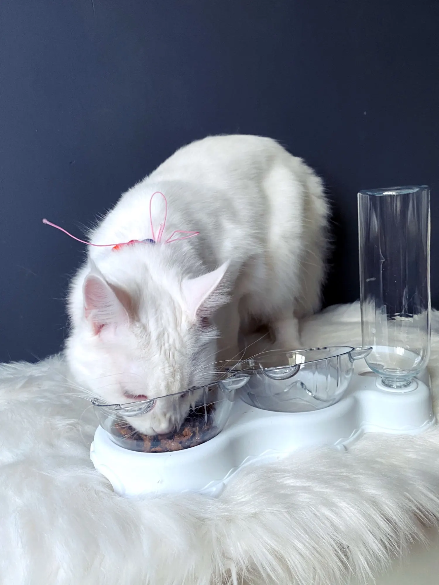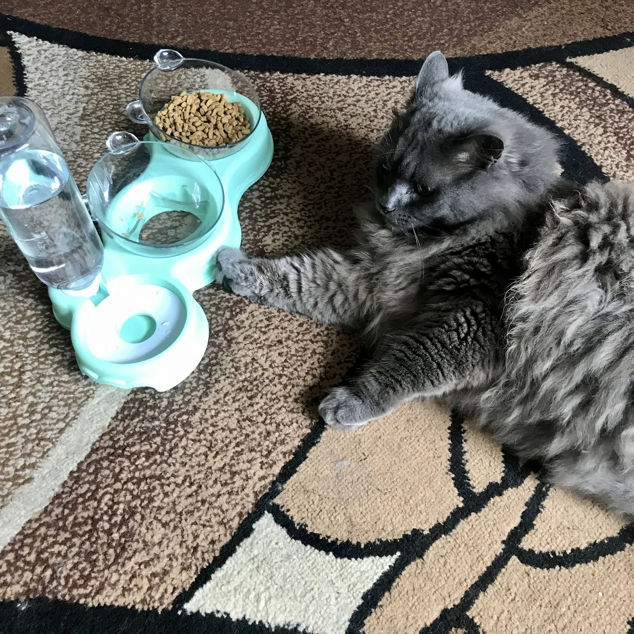 Очень удобная миска с поилкой для кошек, все ёмкости съемные, поилка для воды большого размера, можно оставить кота на несколько дней, вода поступает очень хорошо, котик пьет водичку из неё, ему нравится. В одну ёмкость я кладу влажный корм, в другую ёмкость сухой корм, миски котику очень понравились, доставка была быстрая за 2 недели в Россию, рекомендую продавца)