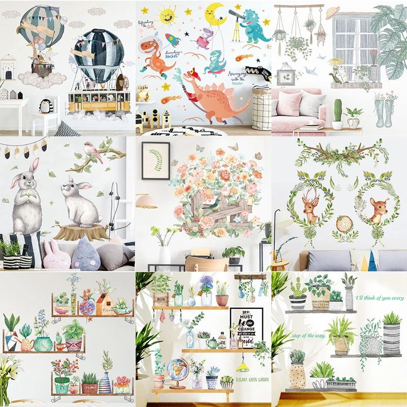 LuanQI листья Наклейка на стену зеленые листья лоза ПВХ Настенная Наклейка для спальни дома гостиной украшения DIY Наклейка на обои