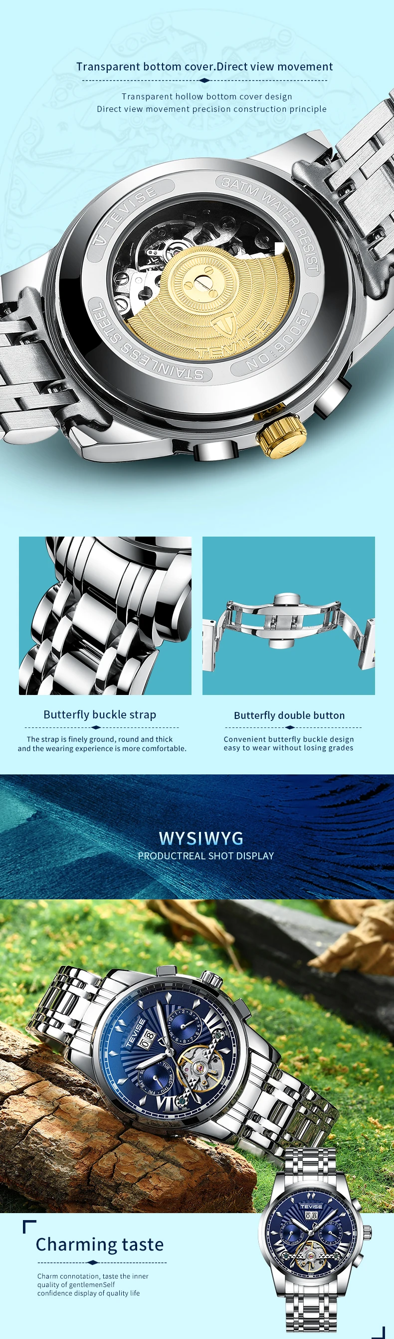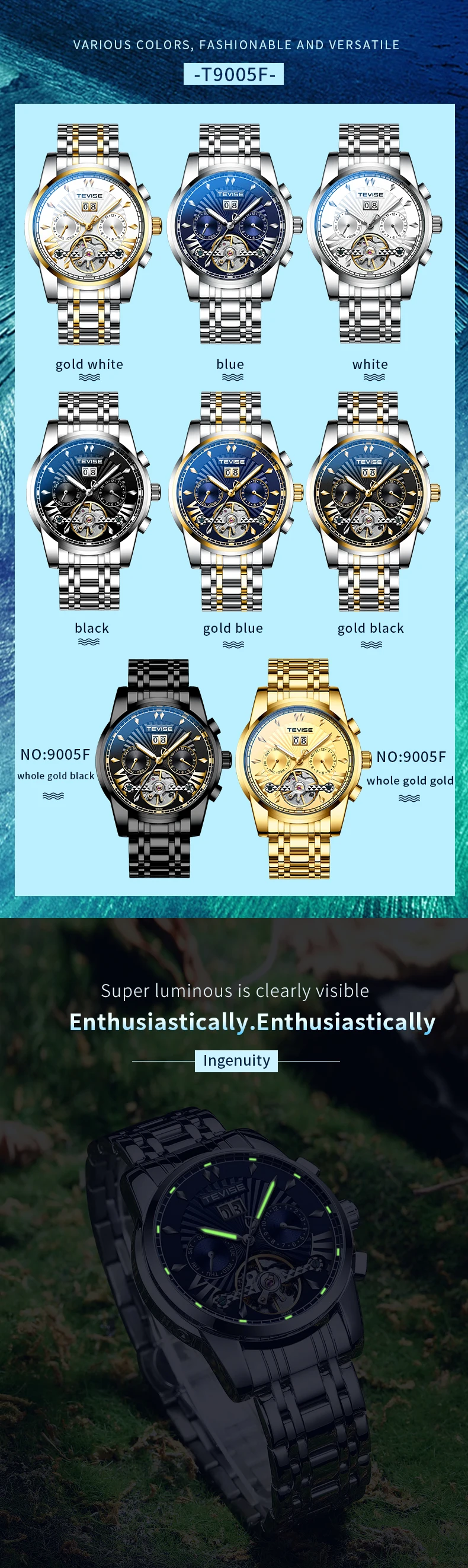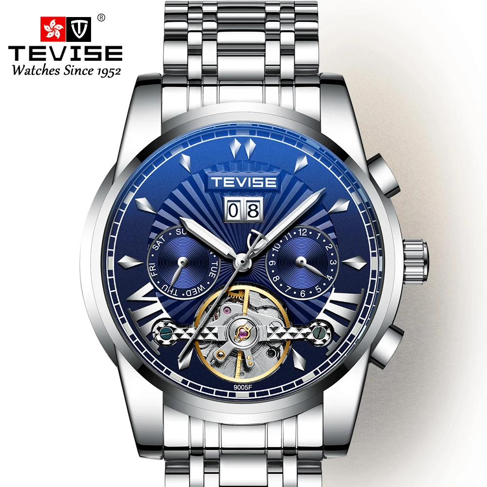 Мужские часы Tevise 9005, светящиеся механические часы с фазой Луны, автоматические часы с отображением даты и недели, наручные часы, мужские часы