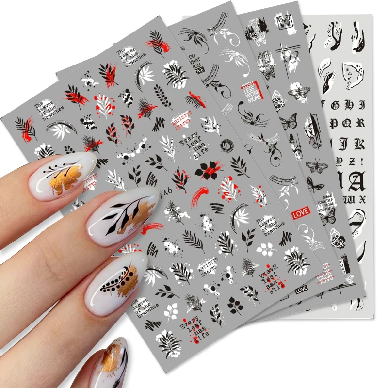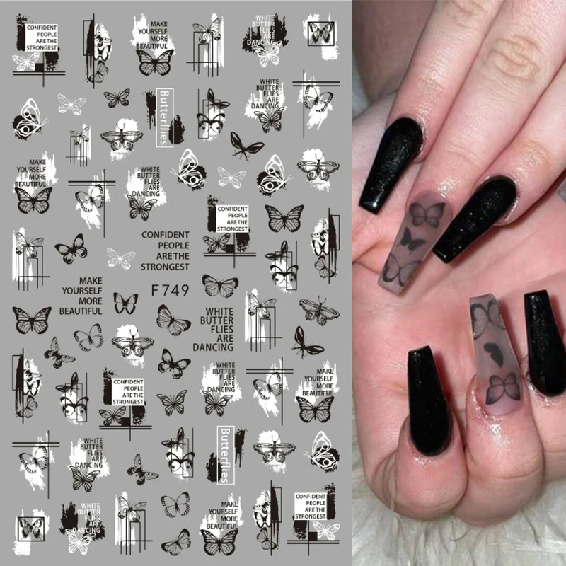 3D наклейки, чёрная бабочка, дизайн ногтей, готические буквы, лист, абстракт, сделай сам, простой слайдер, тату для ногтей, Гель-лак